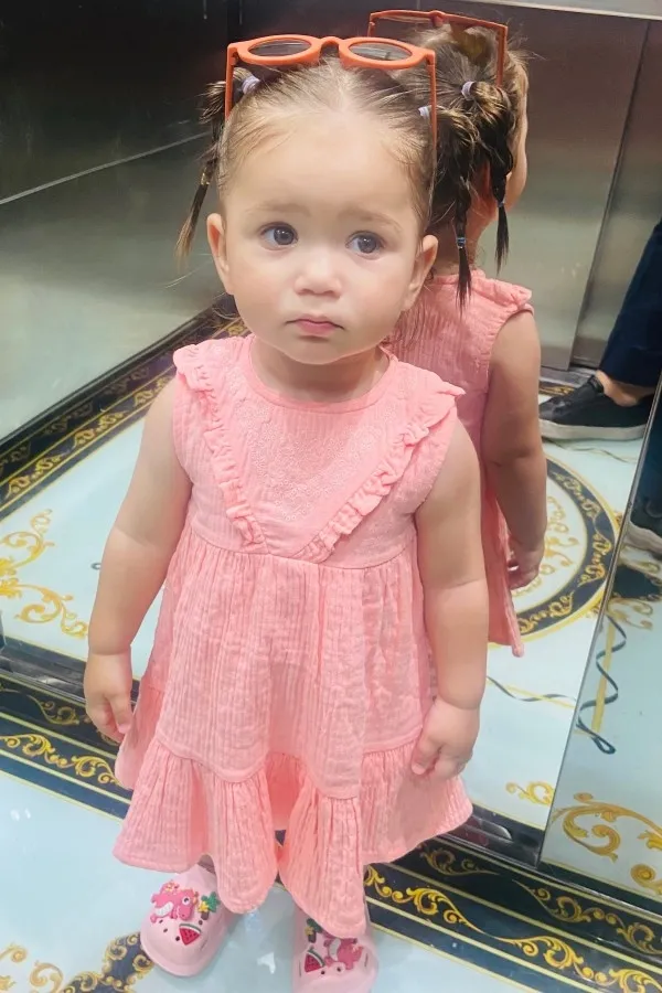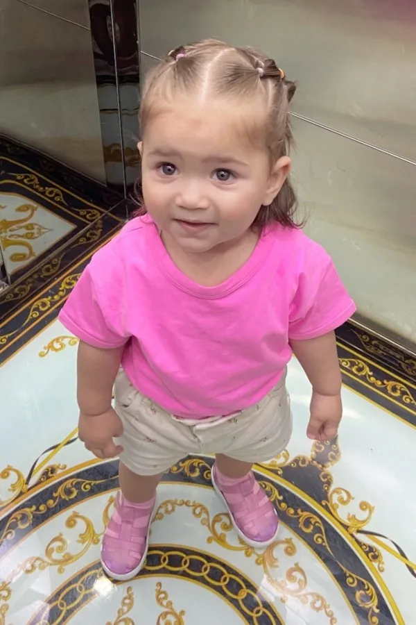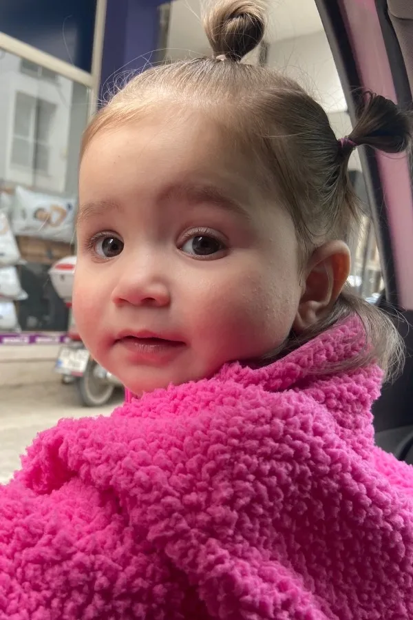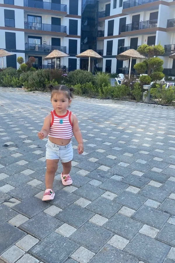 1 yaşında, güler yüzlü, çok mutlu ve sevimli, yürütebilen tatlı bir bebek