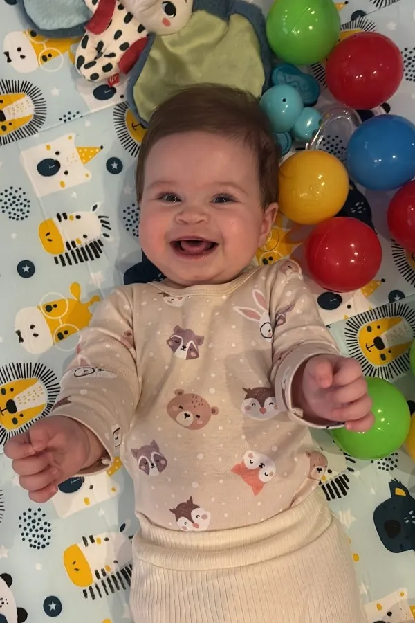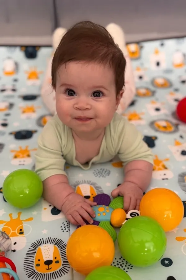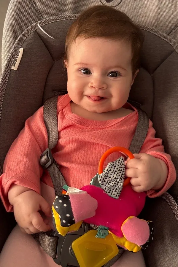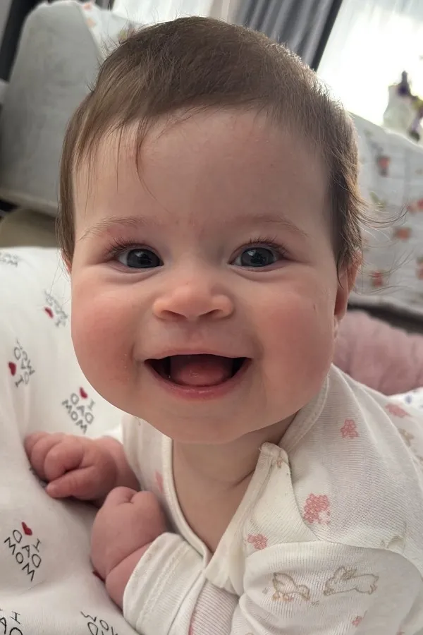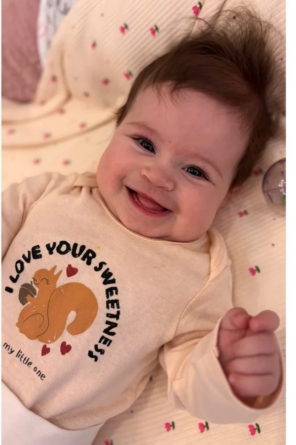 Yasmin 5 aylık, kamera ile göz teması kurabilen, sakin ve güleryüzlü bir bebektir.