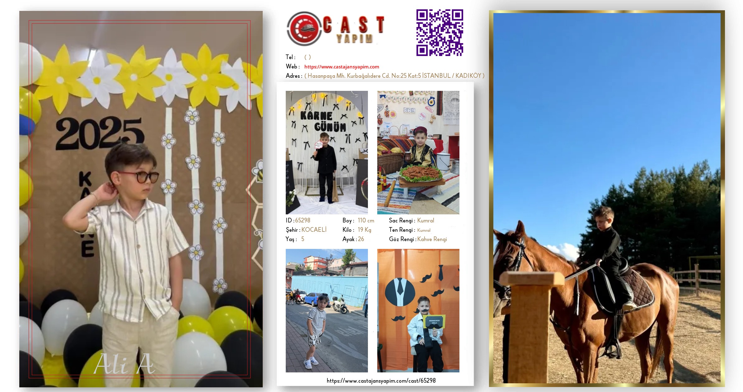Pozitif, iletişimi güçlü ve öğrenmeye açık bir çocuktur. Kamera önünde rahat ve doğal duruş sergiler. Disiplinli, uyumlu ve sorumluluk sahibidir. Çalışma ortamına hızlı adapte olur.