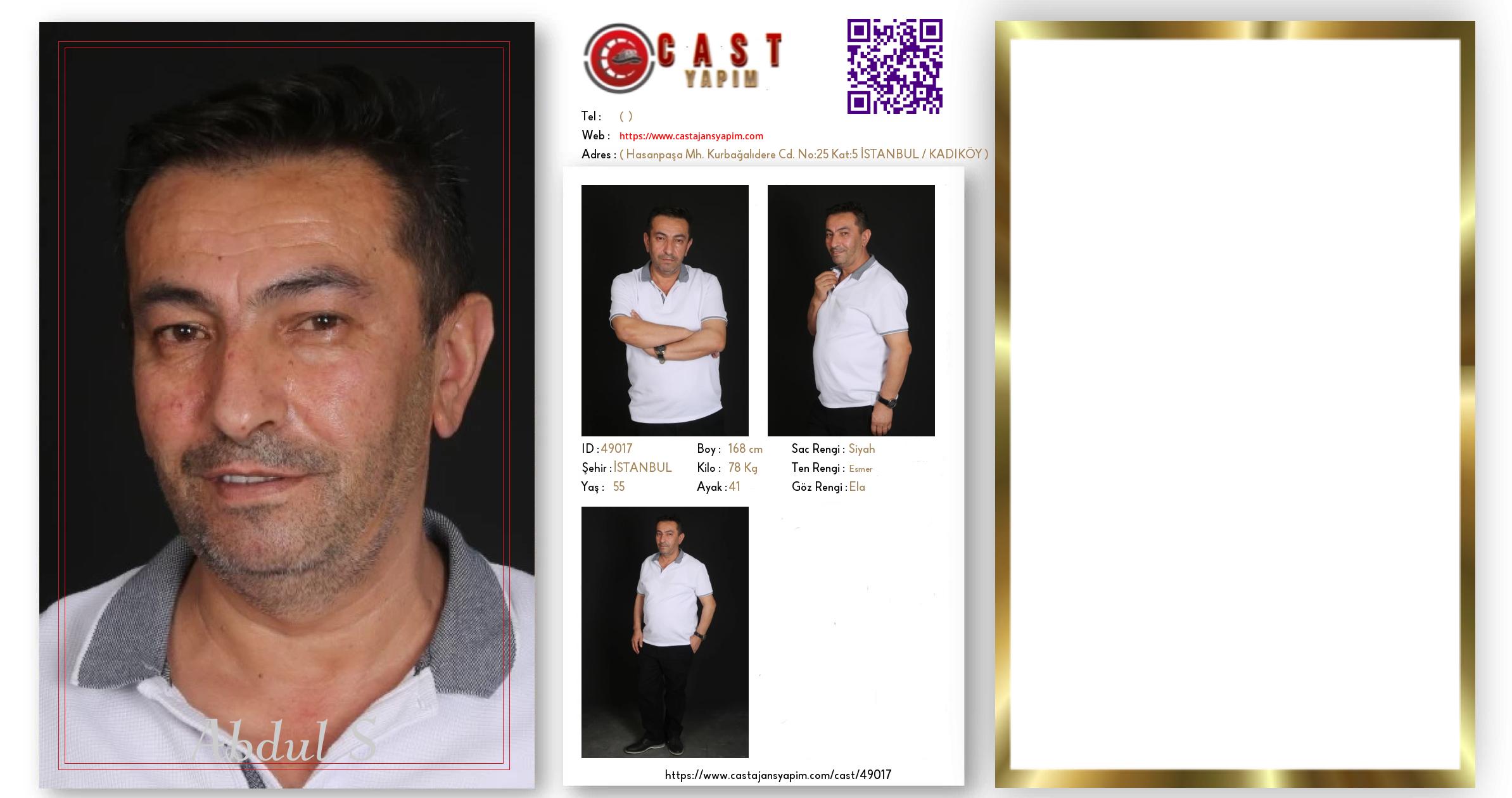 Merhaba, ben Abdul S. İSTANBUL şehrinde yaşıyorum ve 55 yaşındayım. Genel özelliklerim arasında boyum 168 cm, kilom 78 kg, saç rengim Siyah, göz rengim Ela, ten rengim Esmer.