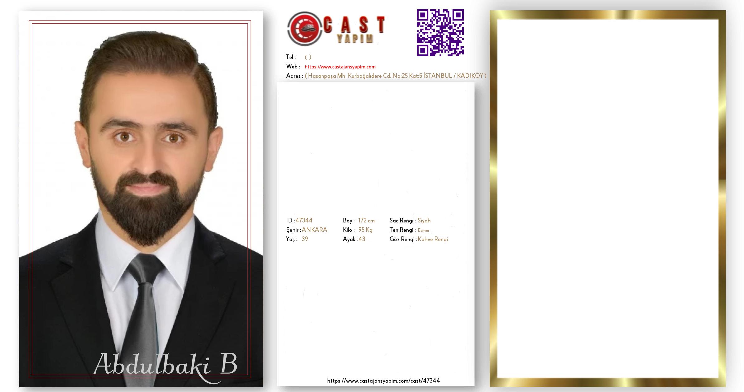 Merhaba, ben Abdulbaki. ANKARA şehrinde yaşıyorum ve 39 yaşındayım. Genel özelliklerim arasında boyum 172 cm, kilom 95 kg, saç rengim Siyah, göz rengim Kahve Rengi, ten rengim Esmer.