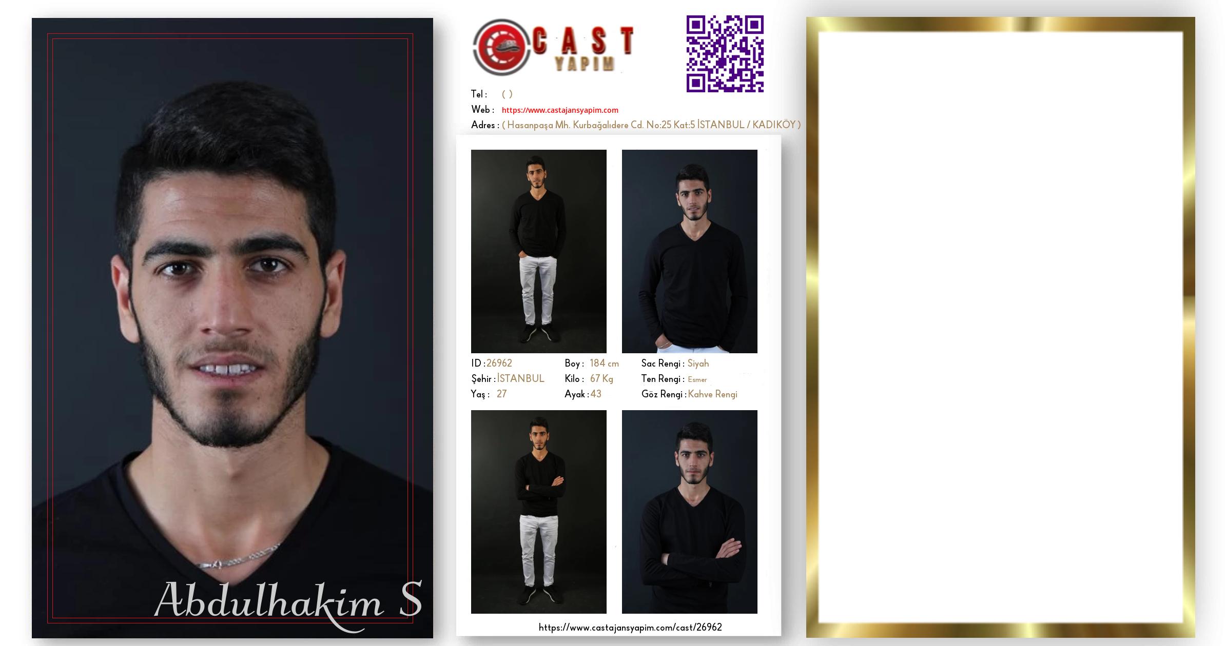Merhaba, ben Abdulhakim S. İSTANBUL şehrinde yaşıyorum ve 27 yaşındayım. Genel özelliklerim arasında boyum 184 cm, kilom 67 kg, saç rengim Siyah, göz rengim Kahve Rengi, ten rengim Esmer.