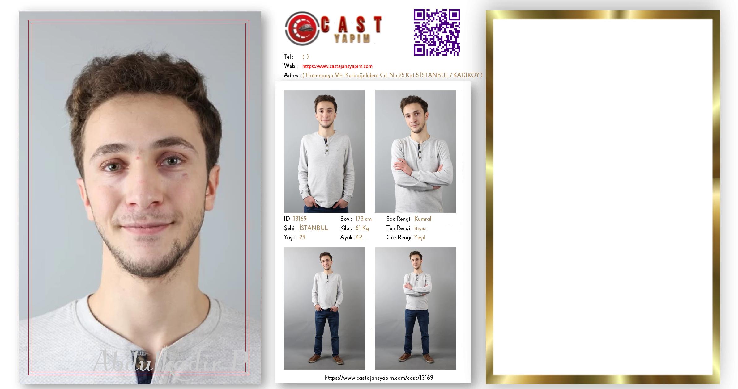 Merhaba, ben Abdulkadir. İSTANBUL şehrinde yaşıyorum ve 29 yaşındayım. Genel özelliklerim arasında boyum 173 cm, kilom 61 kg, saç rengim Kumral, göz rengim Yeşil, ten rengim Beyaz.
