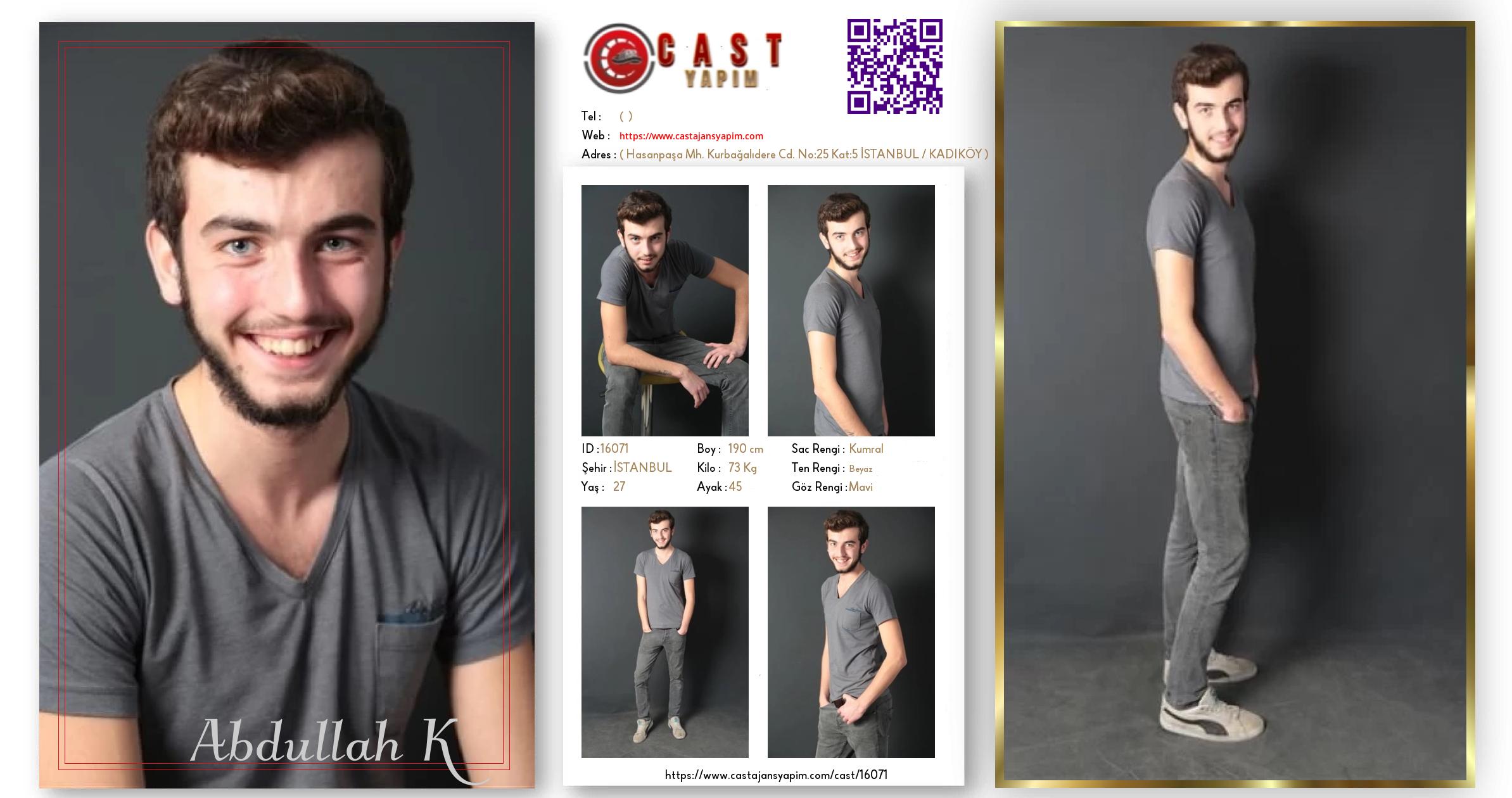 Merhaba, ben Abdullah K. İSTANBUL şehrinde yaşıyorum ve 27 yaşındayım. Genel özelliklerim arasında boyum 190 cm, kilom 73 kg, saç rengim Kumral, göz rengim Mavi, ten rengim Beyaz.
