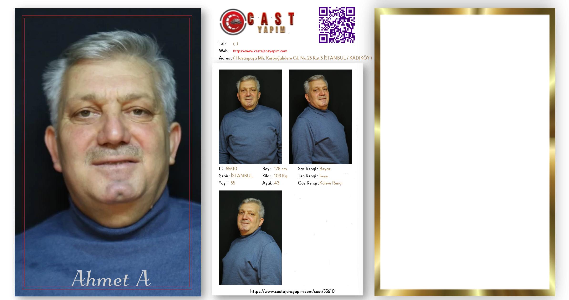 Merhaba, ben Ahmet İbrahim. İSTANBUL şehrinde yaşıyorum ve 55 yaşındayım. Genel özelliklerim arasında boyum 178 cm, kilom 103 kg, saç rengim Beyaz, göz rengim Kahve Rengi, ten rengim Beyaz.