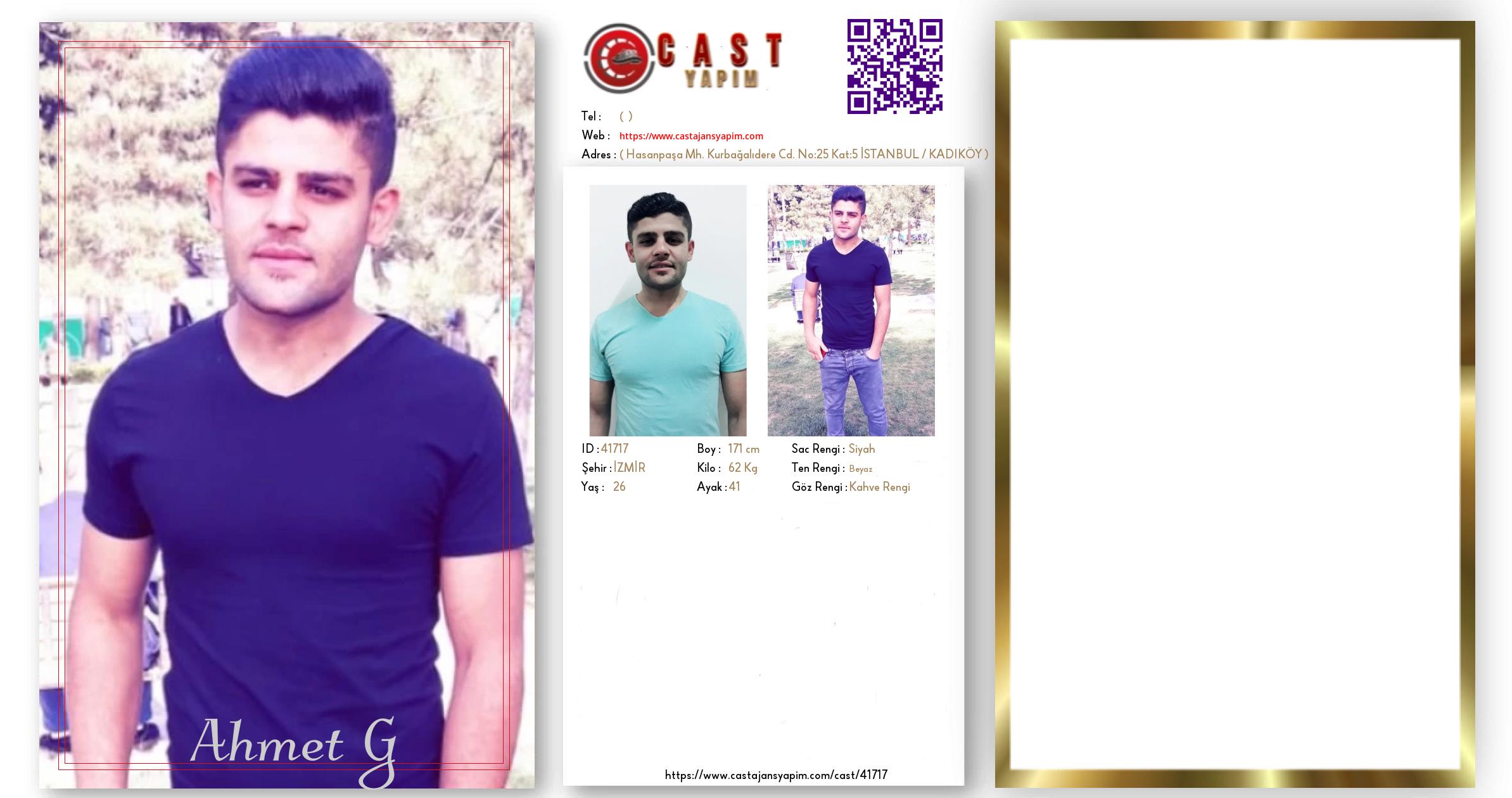 Merhaba, ben Ahmet. İZMİR şehrinde yaşıyorum ve 26 yaşındayım. Genel özelliklerim arasında boyum 171 cm, kilom 62 kg, saç rengim Siyah, göz rengim Kahve Rengi, ten rengim Beyaz.