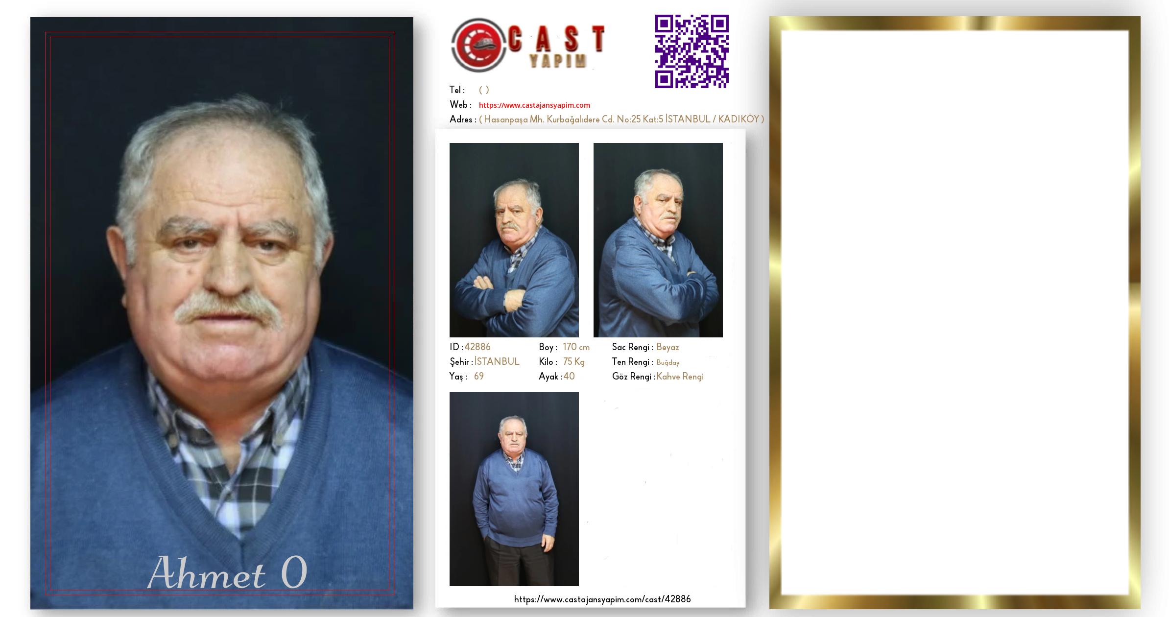 Merhaba, ben Ahmet. İSTANBUL şehrinde yaşıyorum ve 69 yaşındayım. Genel özelliklerim arasında boyum 170 cm, kilom 75 kg, saç rengim Beyaz, göz rengim Kahve Rengi, ten rengim Buğday.