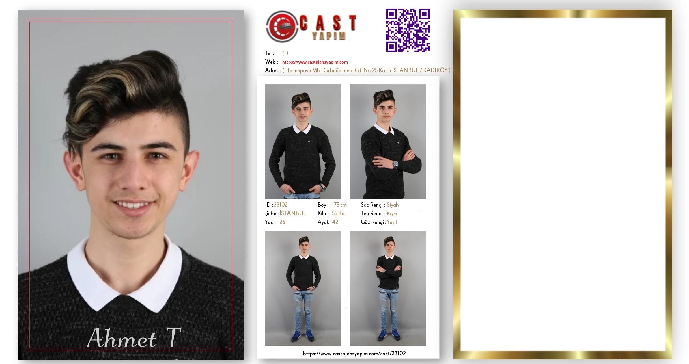 Merhaba, ben Ahmet. İSTANBUL şehrinde yaşıyorum ve 26 yaşındayım. Genel özelliklerim arasında boyum 175 cm, kilom 55 kg, saç rengim Siyah, göz rengim Yeşil, ten rengim Beyaz.