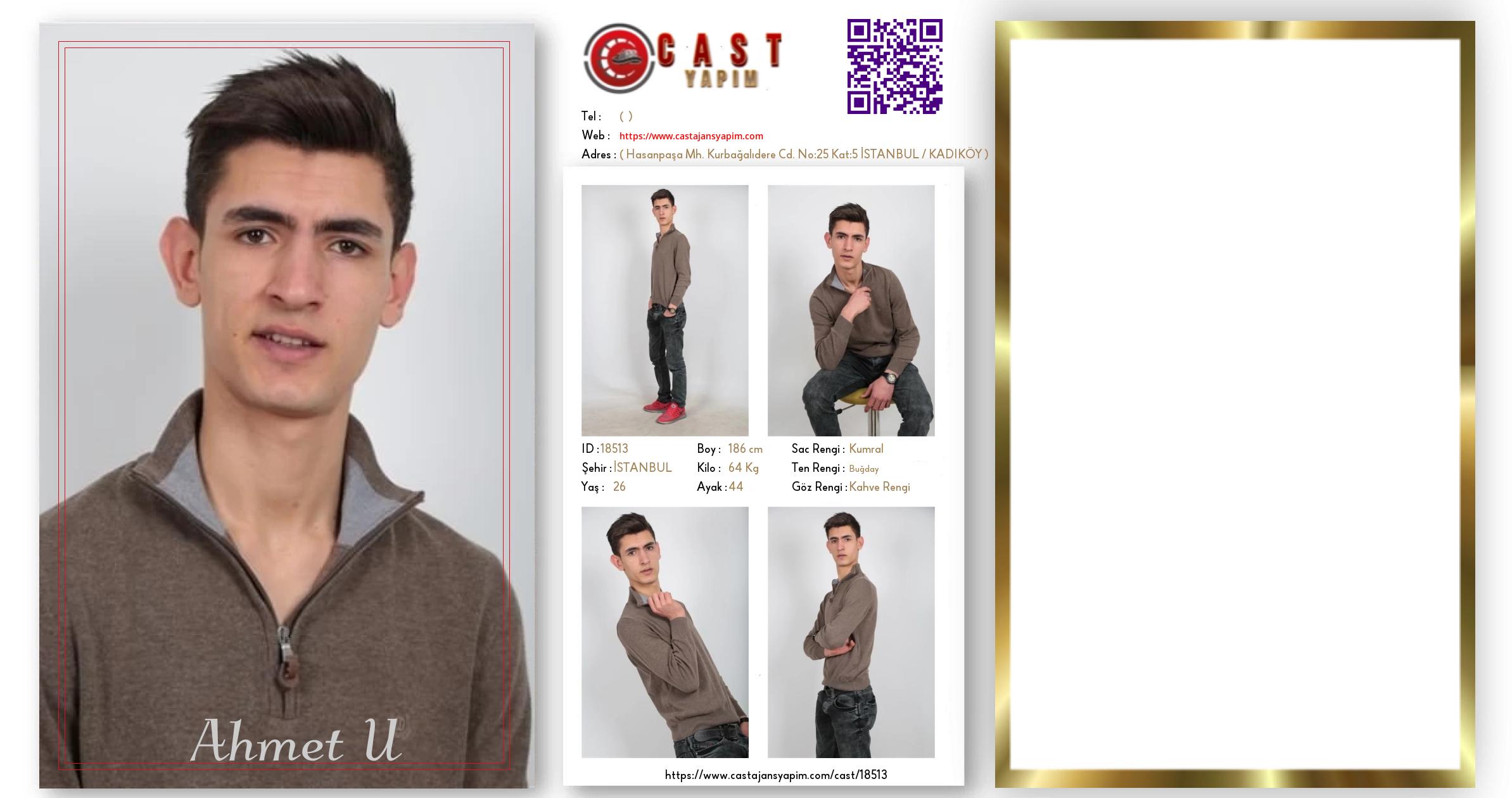 Merhaba, ben Ahmet U. İSTANBUL şehrinde yaşıyorum ve 26 yaşındayım. Genel özelliklerim arasında boyum 186 cm, kilom 64 kg, saç rengim Kumral, göz rengim Kahve Rengi, ten rengim Buğday.