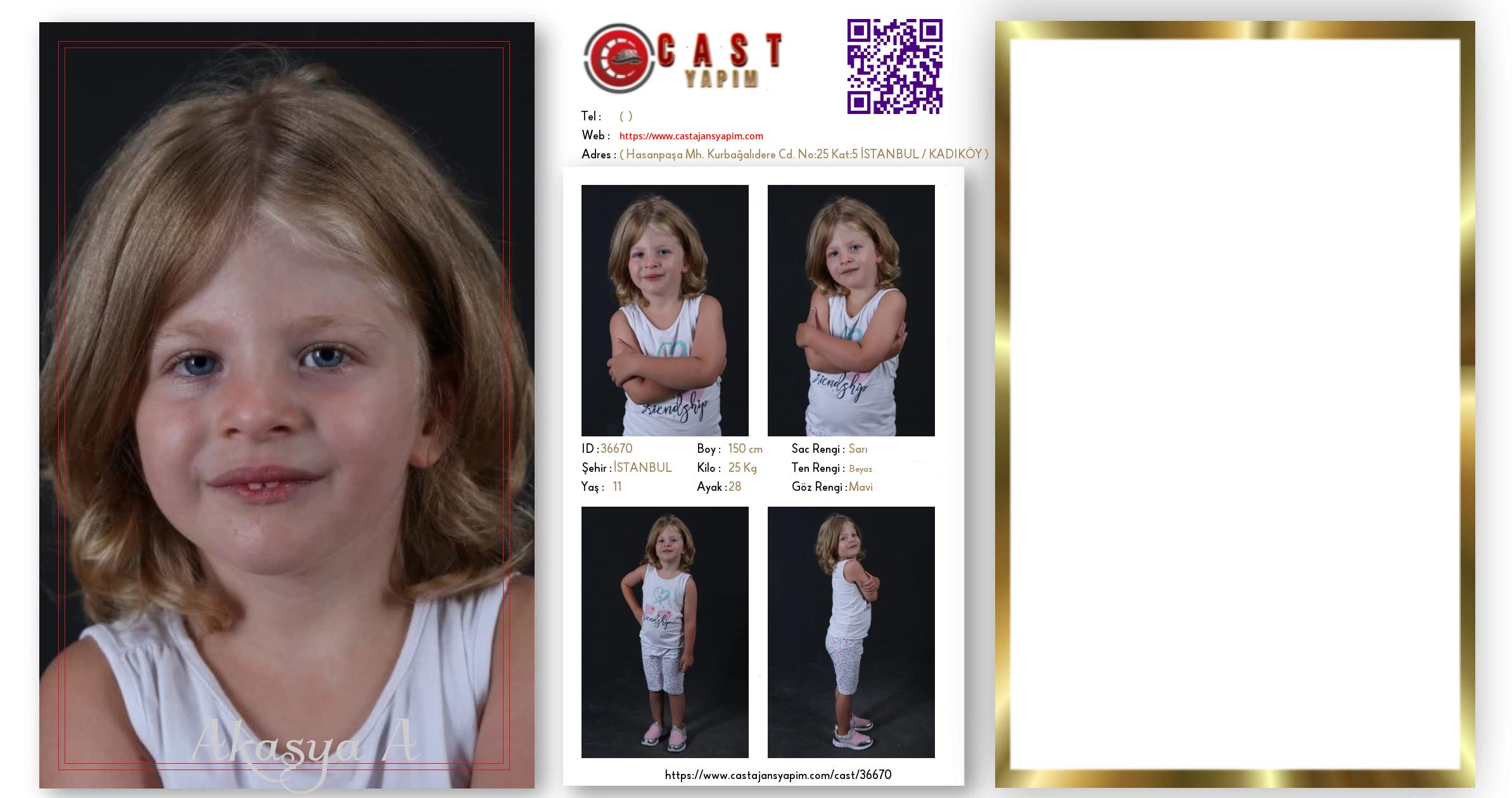 Merhaba, ben Akasya. İSTANBUL şehrinde yaşıyorum ve 11 yaşındayım. Genel özelliklerim arasında boyum 150 cm, kilom 25 kg, saç rengim Sarı, göz rengim Mavi, ten rengim Beyaz.