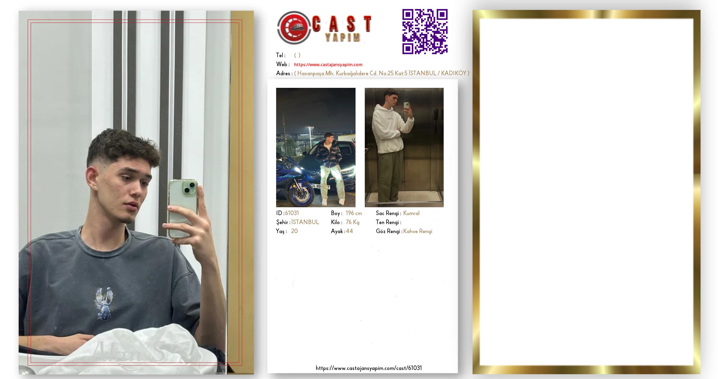 Merhaba, ben Akın. İSTANBUL şehrinde yaşıyorum ve 20 yaşındayım. Genel özelliklerim arasında boyum 196 cm, kilom 76 kg, saç rengim Kumral, göz rengim Kahve Rengi.