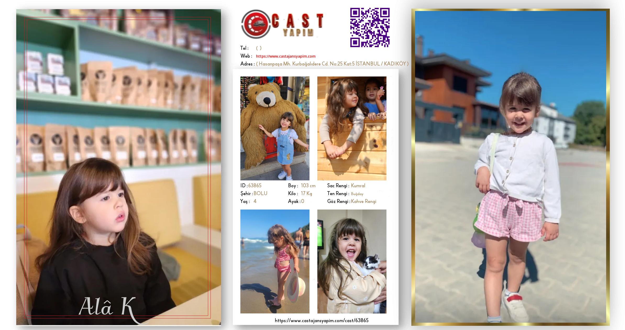 Merhaba, ben Alâ K. BOLU şehrinde yaşıyorum ve 4 yaşındayım. Genel özelliklerim arasında boyum 103 cm, kilom 17 kg, saç rengim Kumral, göz rengim Kahve Rengi, ten rengim Buğday.