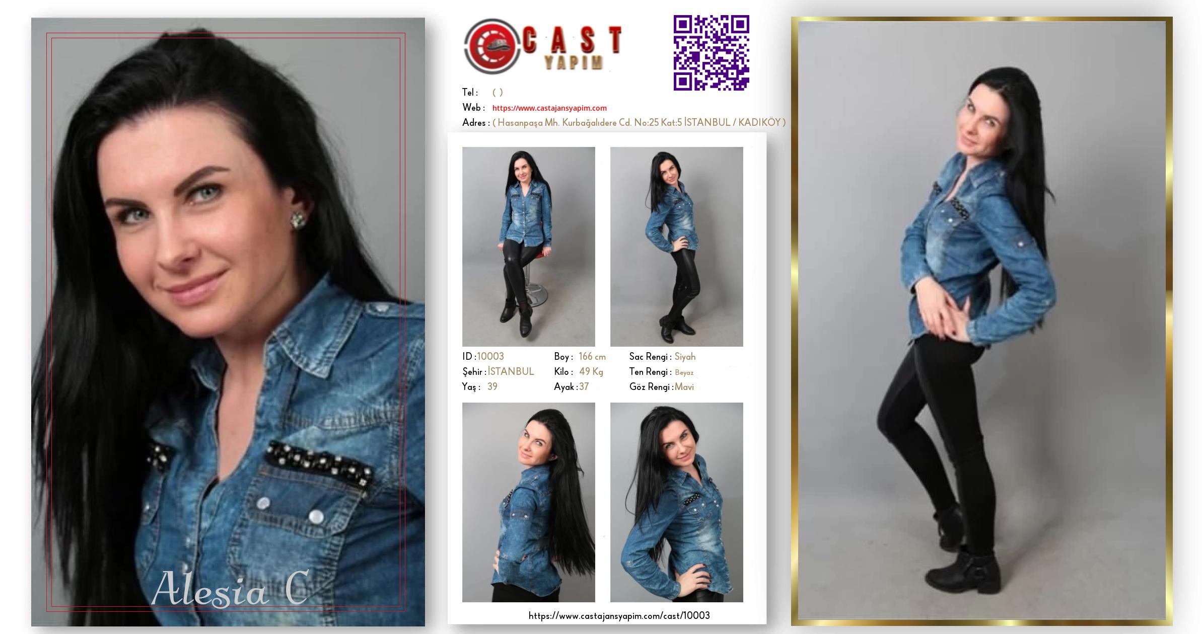 Merhaba, ben Alesia. İSTANBUL şehrinde yaşıyorum ve 39 yaşındayım. Genel özelliklerim arasında boyum 166 cm, kilom 49 kg, saç rengim Siyah, göz rengim Mavi, ten rengim Beyaz.
