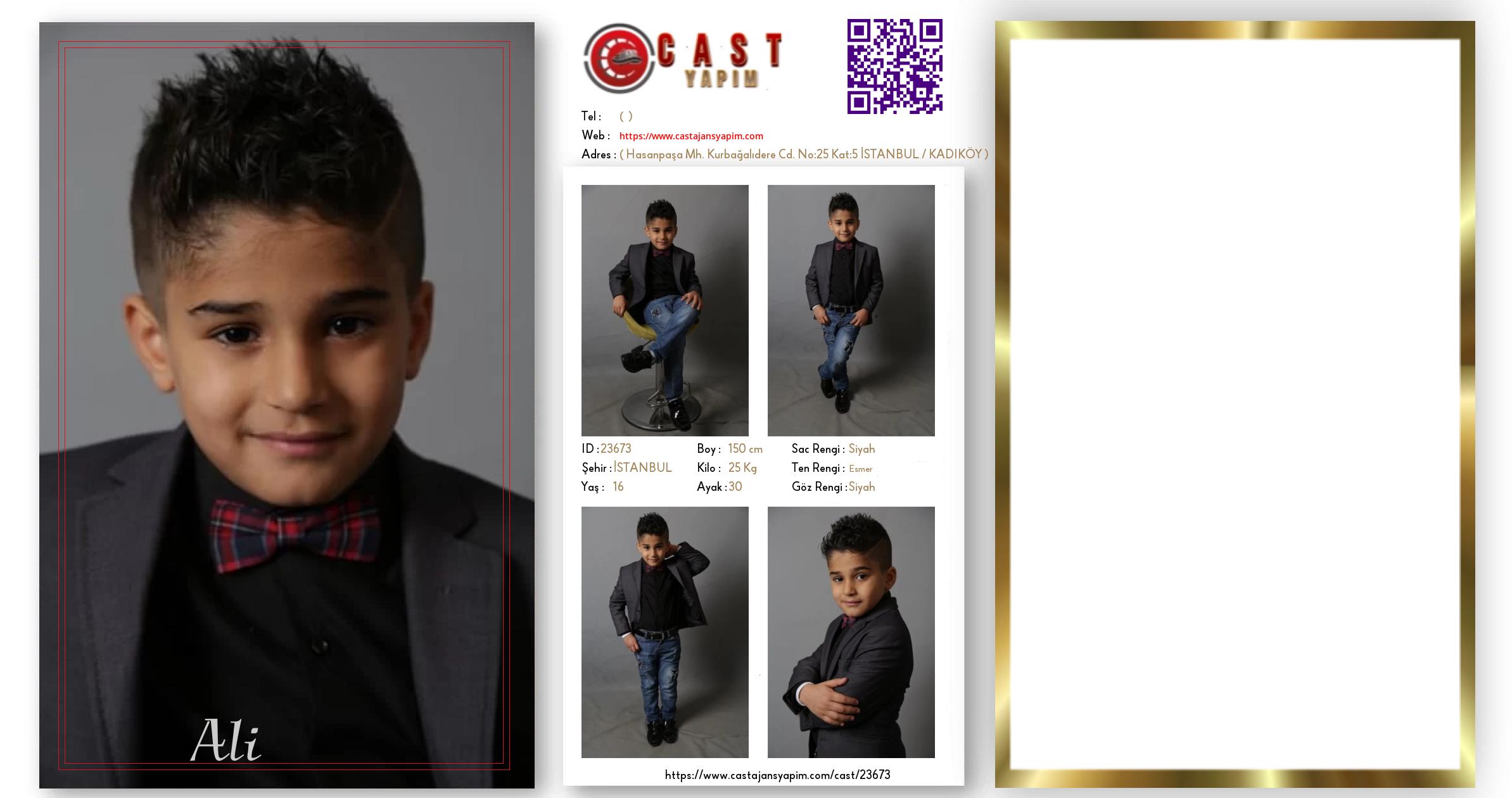 Merhaba, ben Ali . İSTANBUL şehrinde yaşıyorum ve 16 yaşındayım. Genel özelliklerim arasında boyum 150 cm, kilom 25 kg, saç rengim Siyah, göz rengim Siyah, ten rengim Esmer.