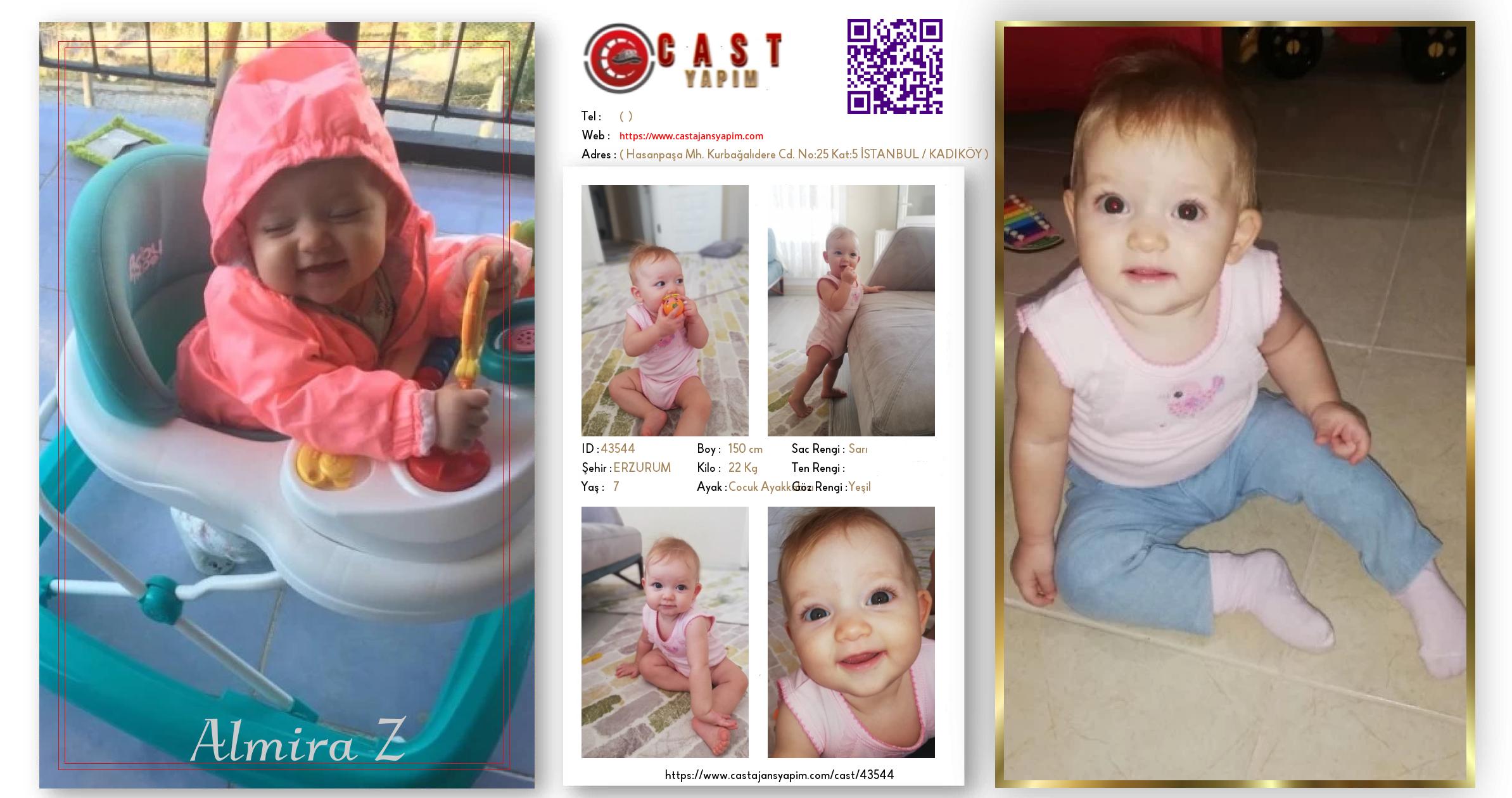 Merhaba, ben Almira. ERZURUM şehrinde yaşıyorum ve 7 yaşındayım. Genel özelliklerim arasında boyum 150 cm, kilom 22 kg, saç rengim Sarı, göz rengim Yeşil.