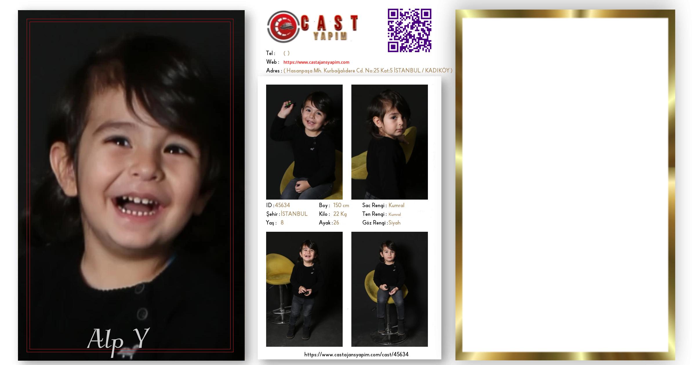 Merhaba, ben Alp Tuğrul. İSTANBUL şehrinde yaşıyorum ve 8 yaşındayım. Genel özelliklerim arasında boyum 150 cm, kilom 22 kg, saç rengim Kumral, göz rengim Siyah, ten rengim Kumral.