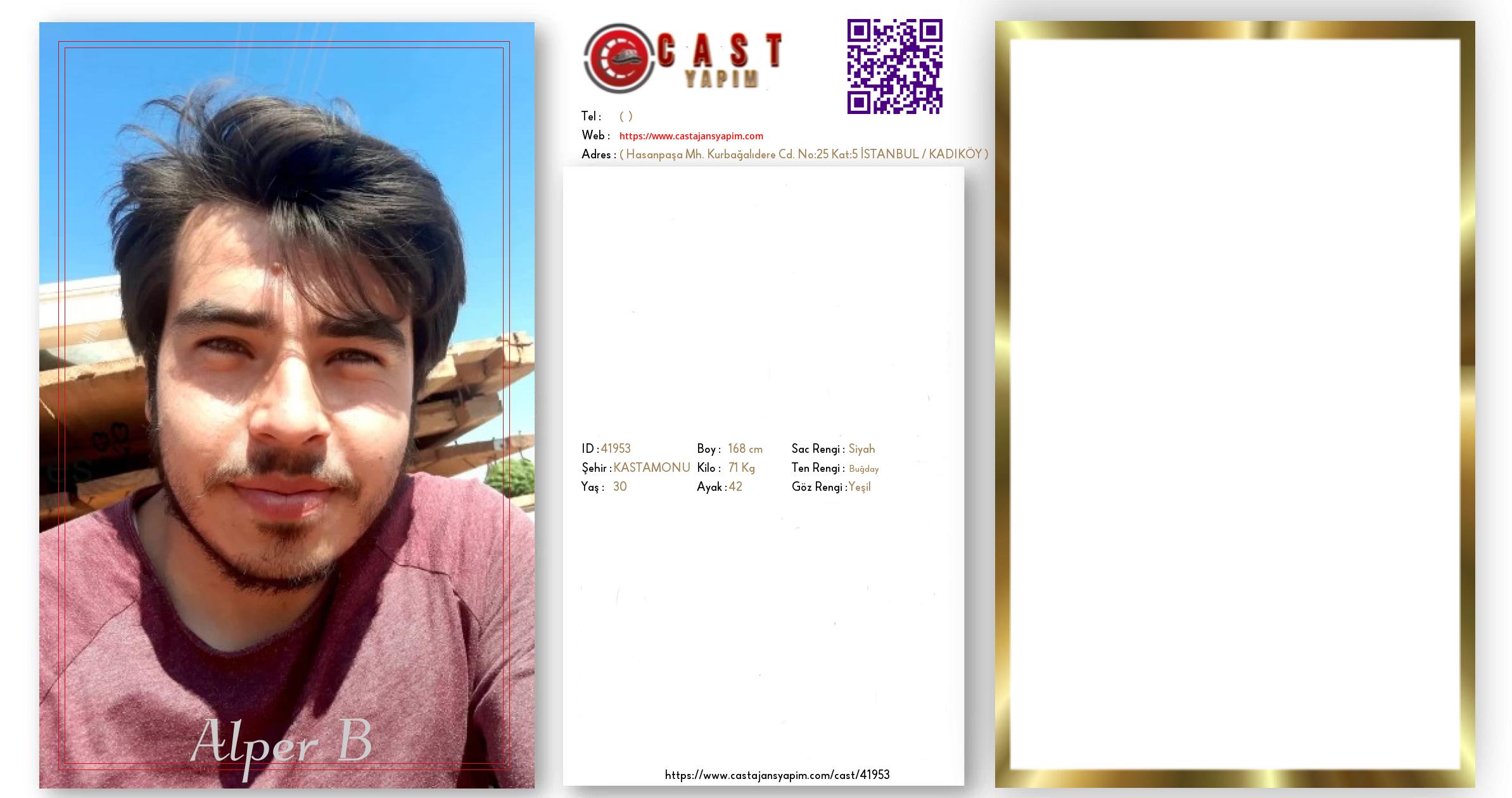 Merhaba, ben Alper B. KASTAMONU şehrinde yaşıyorum ve 30 yaşındayım. Genel özelliklerim arasında boyum 168 cm, kilom 71 kg, saç rengim Siyah, göz rengim Yeşil, ten rengim Buğday.