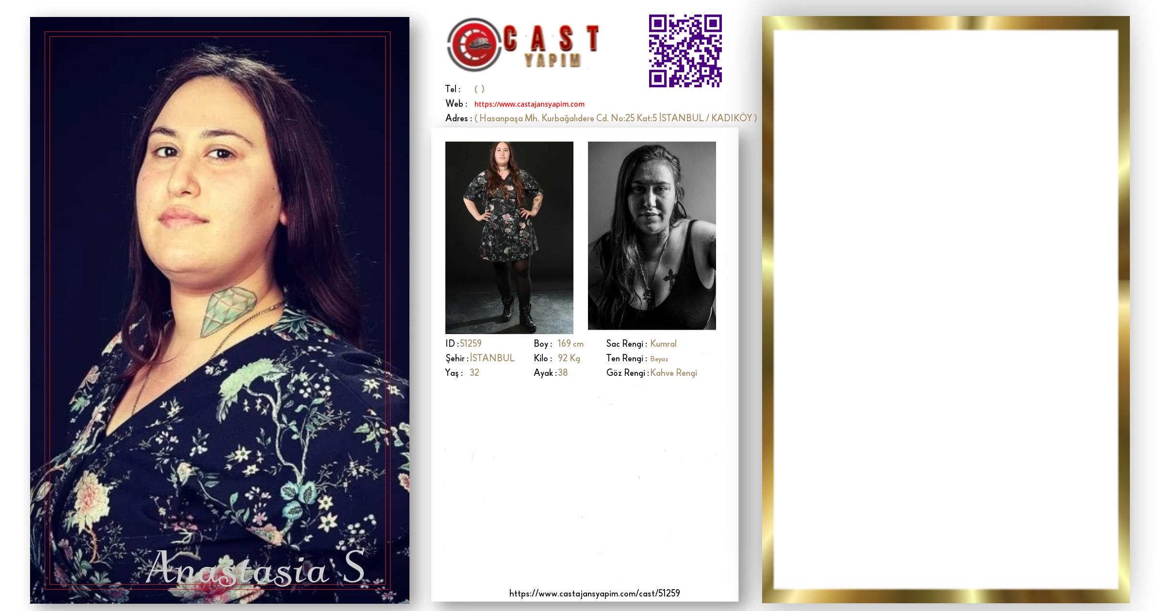 Merhaba, ben Anastasia Sofia Hazal. İSTANBUL şehrinde yaşıyorum ve 32 yaşındayım. Genel özelliklerim arasında boyum 169 cm, kilom 92 kg, saç rengim Kumral, göz rengim Kahve Rengi, ten rengim Beyaz.