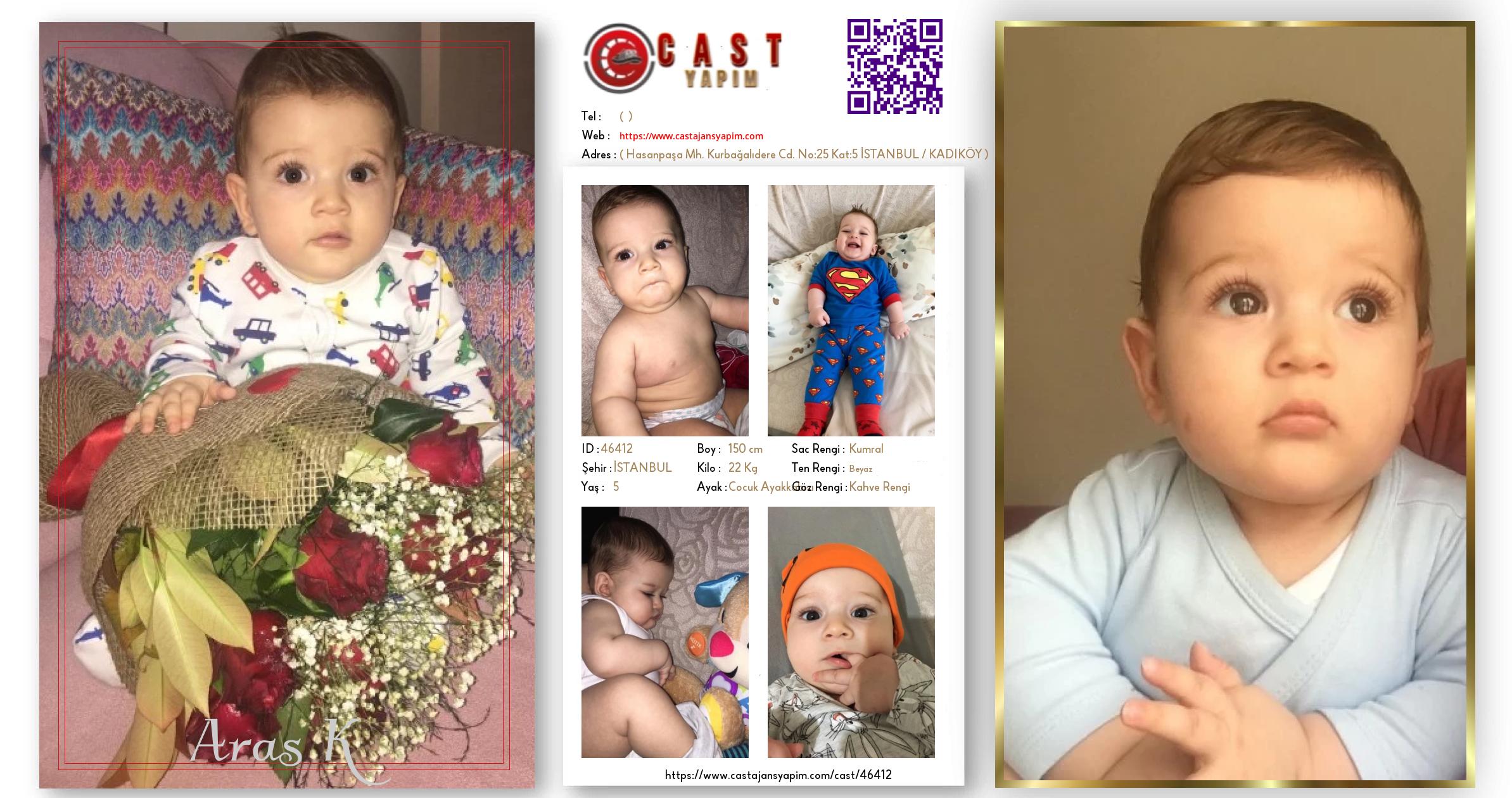Merhaba, ben Aras K. İSTANBUL şehrinde yaşıyorum ve 5 yaşındayım. Genel özelliklerim arasında boyum 150 cm, kilom 22 kg, saç rengim Kumral, göz rengim Kahve Rengi, ten rengim Beyaz.