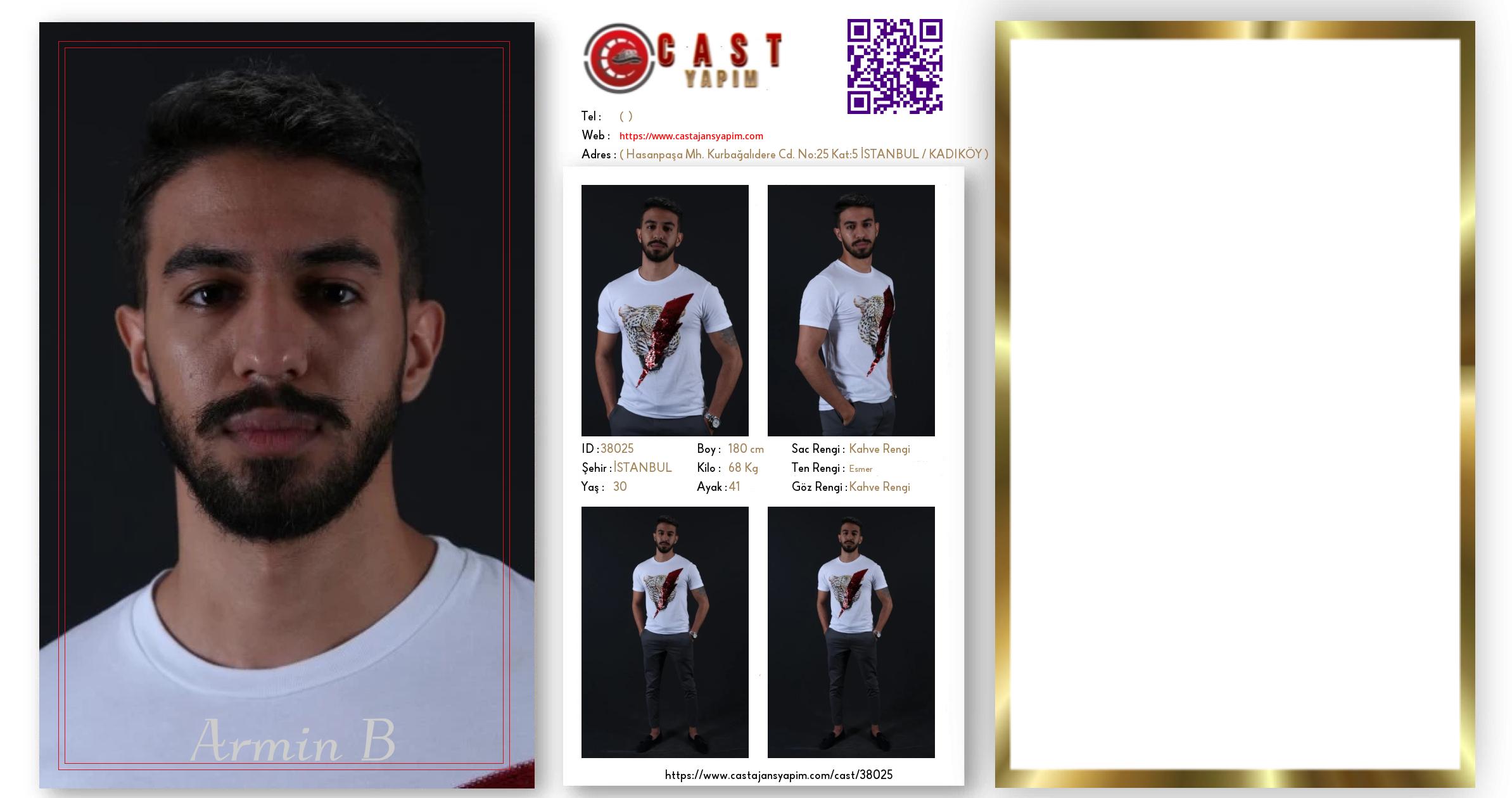 Merhaba, ben Armin B. İSTANBUL şehrinde yaşıyorum ve 30 yaşındayım. Genel özelliklerim arasında boyum 180 cm, kilom 68 kg, saç rengim Kahve Rengi, göz rengim Kahve Rengi, ten rengim Esmer.
