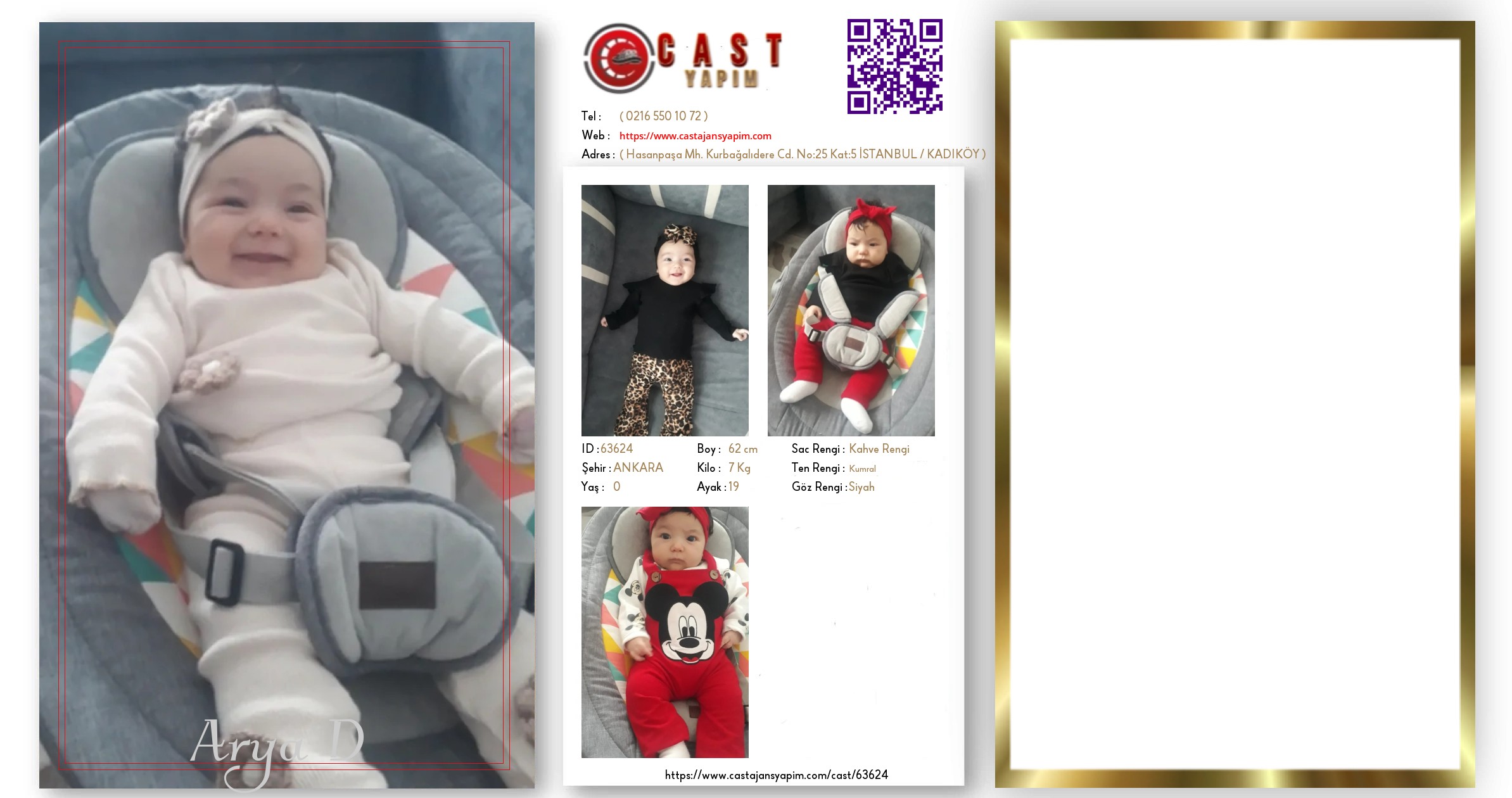 Merhaba, ben Arya D. ANKARA şehrinde yaşıyorum ve 1 yaşındayım. Genel özelliklerim arasında boyum 62 cm, kilom 7 kg, saç rengim Kahve Rengi, göz rengim Siyah, ten rengim Kumral.