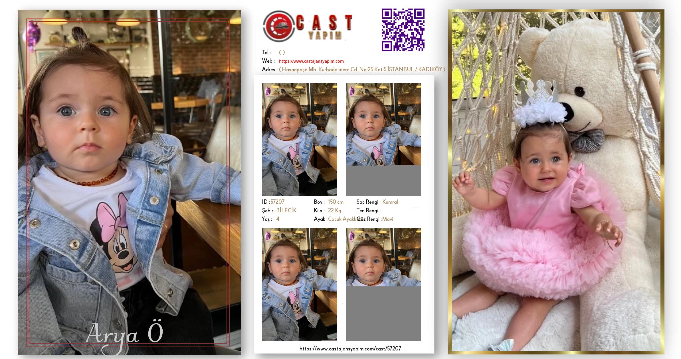 Merhaba, ben Arya. BİLECİK şehrinde yaşıyorum ve 4 yaşındayım. Genel özelliklerim arasında boyum 150 cm, kilom 22 kg, saç rengim Kumral, göz rengim Mavi.