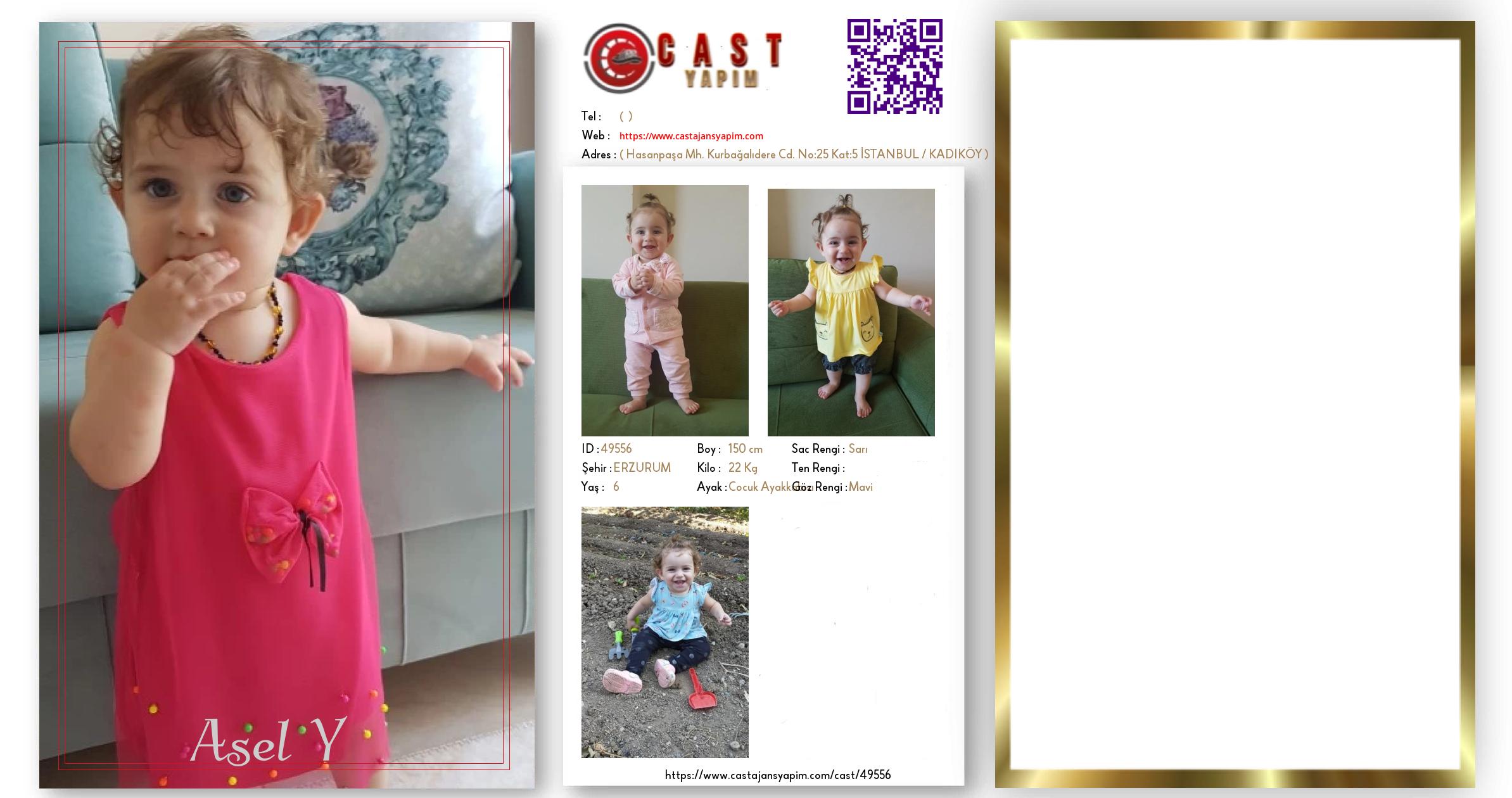 Merhaba, ben Asel Duru. ERZURUM şehrinde yaşıyorum ve 6 yaşındayım. Genel özelliklerim arasında boyum 150 cm, kilom 22 kg, saç rengim Sarı, göz rengim Mavi.