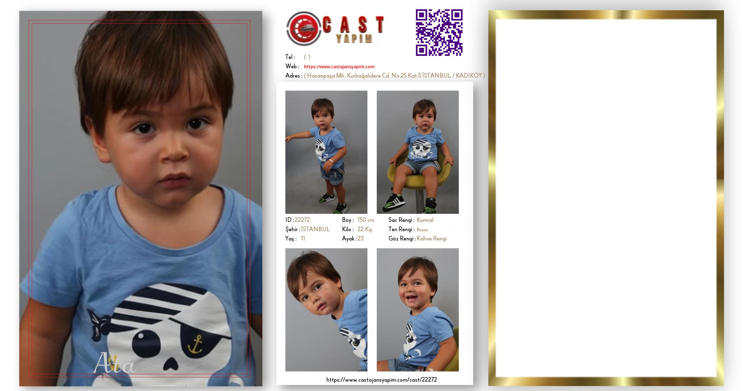 Merhaba, ben Ata . İSTANBUL şehrinde yaşıyorum ve 11 yaşındayım. Genel özelliklerim arasında boyum 150 cm, kilom 22 kg, saç rengim Kumral, göz rengim Kahve Rengi, ten rengim Beyaz.
