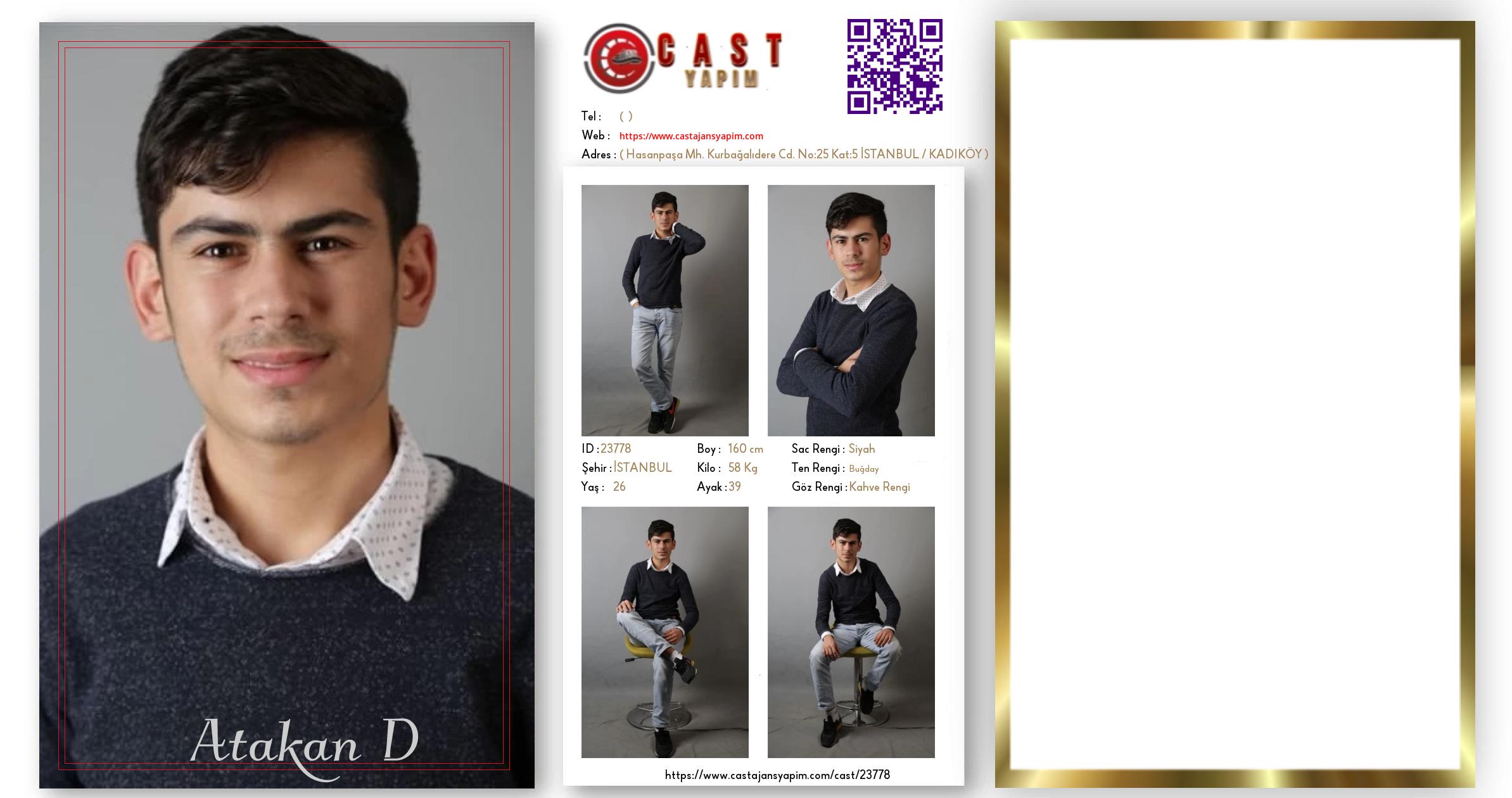 Merhaba, ben Atakan. İSTANBUL şehrinde yaşıyorum ve 26 yaşındayım. Genel özelliklerim arasında boyum 160 cm, kilom 58 kg, saç rengim Siyah, göz rengim Kahve Rengi, ten rengim Buğday.