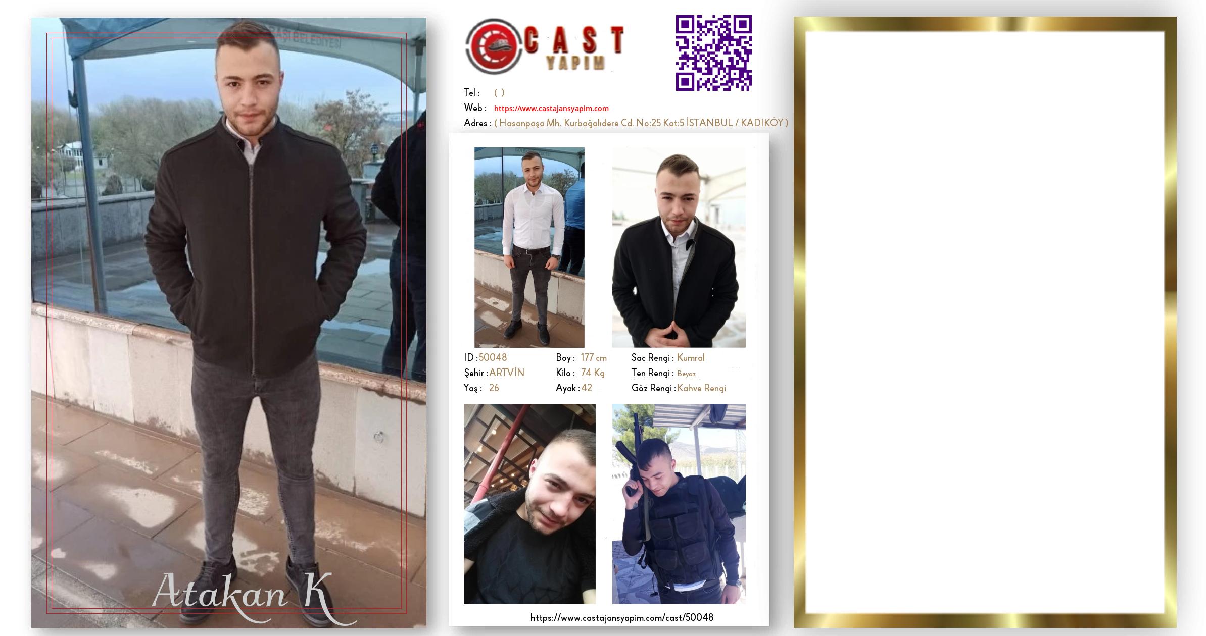 Merhaba, ben Atakan. ARTVİN şehrinde yaşıyorum ve 26 yaşındayım. Genel özelliklerim arasında boyum 177 cm, kilom 74 kg, saç rengim Kumral, göz rengim Kahve Rengi, ten rengim Beyaz.