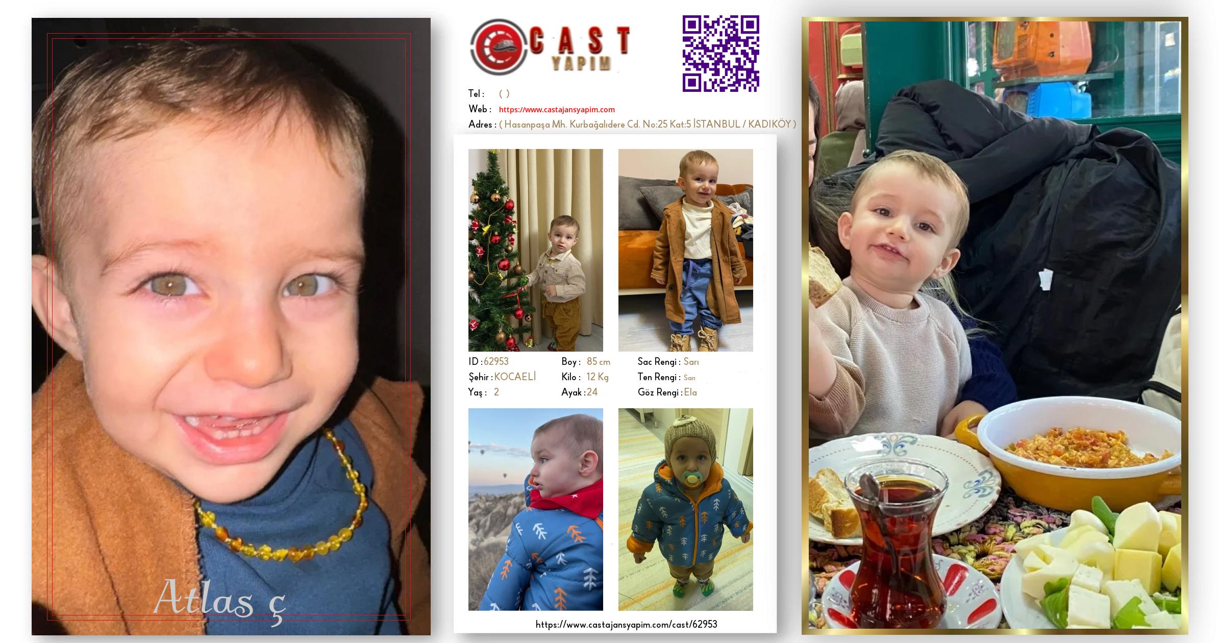 Merhaba, ben Atlas Göktuğ. KOCAELİ şehrinde yaşıyorum ve 2 yaşındayım. Genel özelliklerim arasında boyum 85 cm, kilom 12 kg, saç rengim Sarı, göz rengim Ela, ten rengim Sarı.
