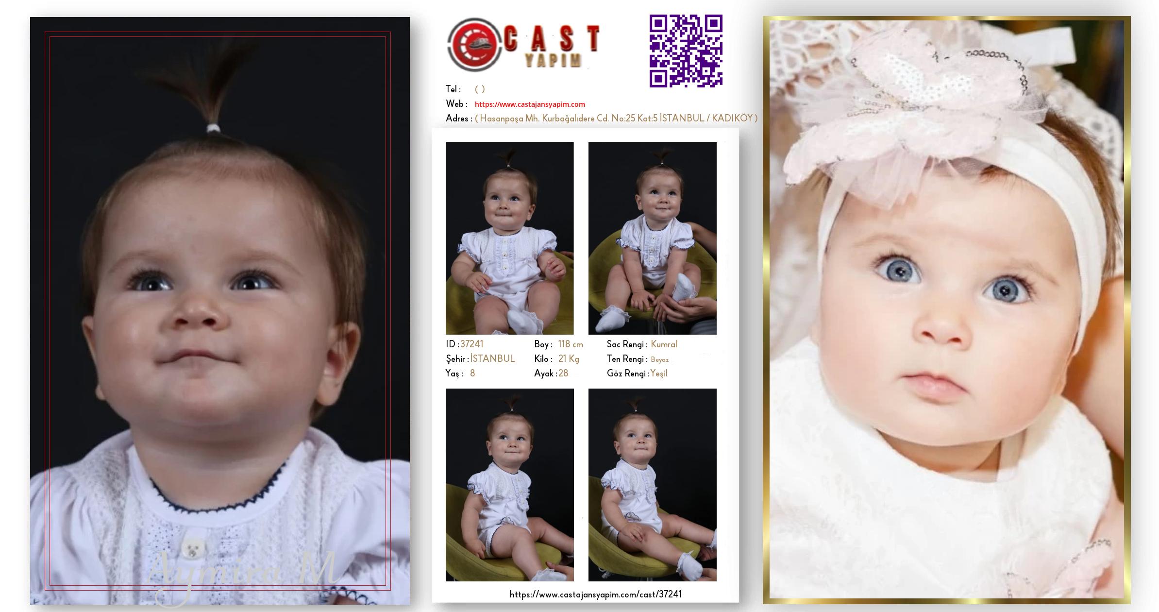 Merhaba, ben Aymira. İSTANBUL şehrinde yaşıyorum ve 8 yaşındayım. Genel özelliklerim arasında boyum 118 cm, kilom 21 kg, saç rengim Kumral, göz rengim Yeşil, ten rengim Beyaz.
