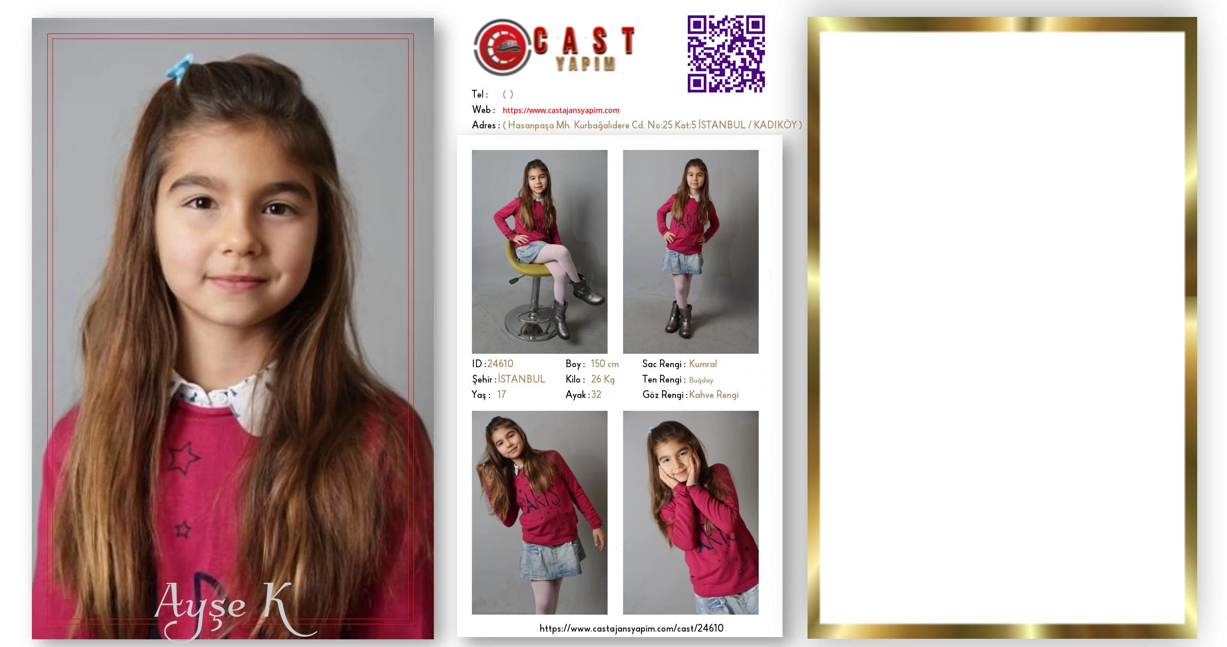 Merhaba, ben Ayşe K. İSTANBUL şehrinde yaşıyorum ve 17 yaşındayım. Genel özelliklerim arasında boyum 150 cm, kilom 26 kg, saç rengim Kumral, göz rengim Kahve Rengi, ten rengim Buğday.