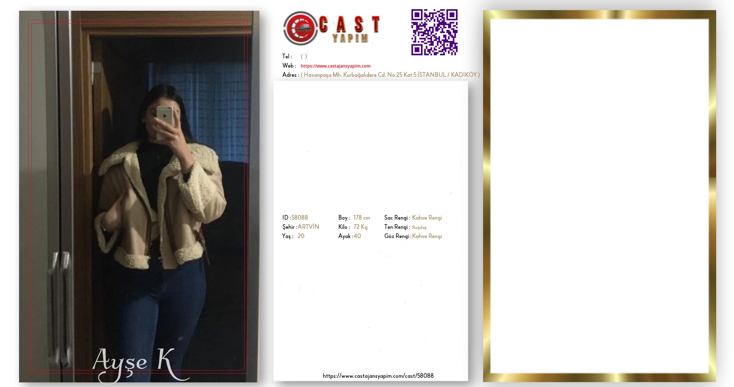 Merhaba, ben Ayşe. ARTVİN şehrinde yaşıyorum ve 20 yaşındayım. Genel özelliklerim arasında boyum 178 cm, kilom 72 kg, saç rengim Kahve Rengi, göz rengim Kahve Rengi, ten rengim Buğday.