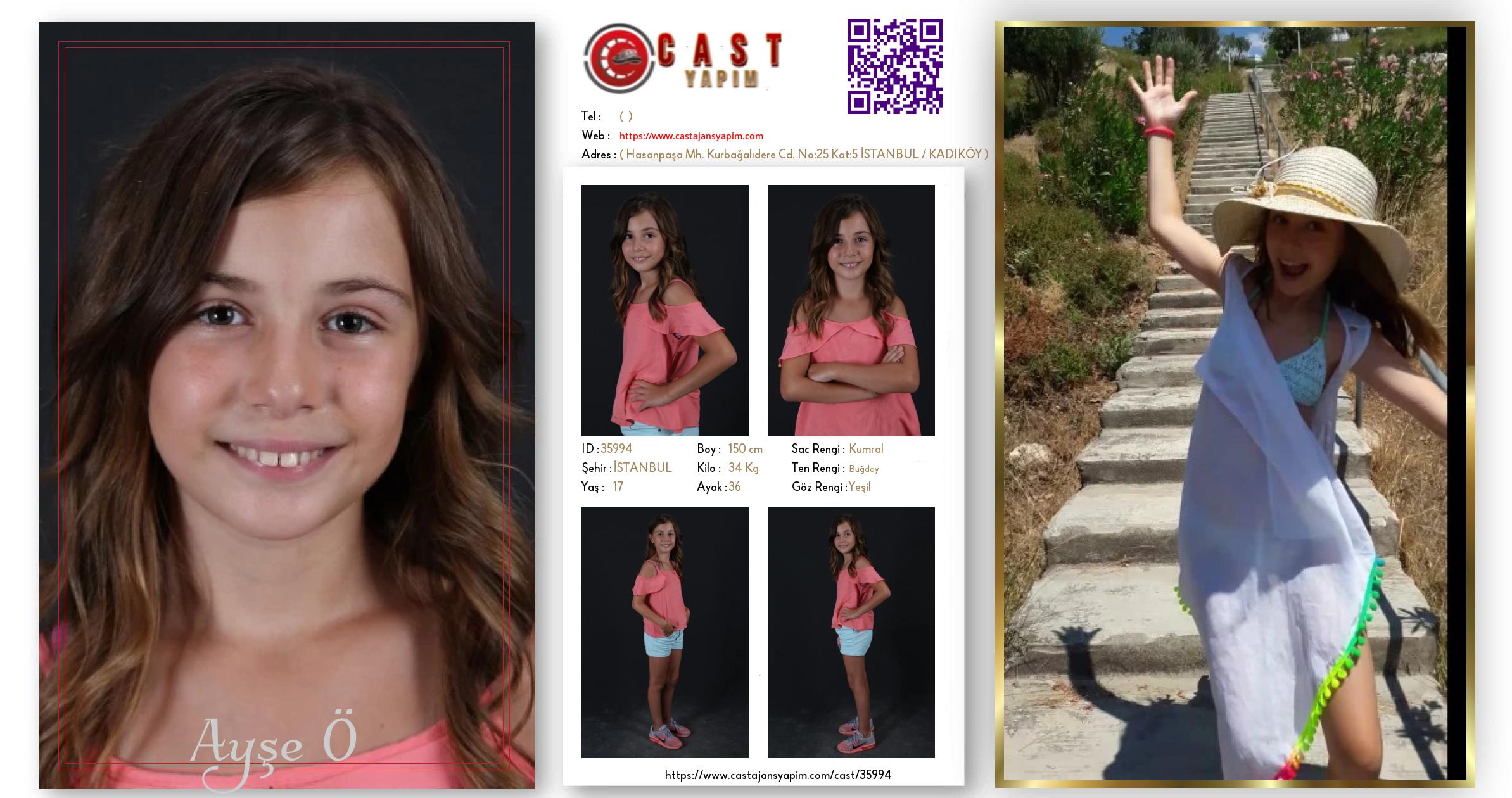 Merhaba, ben Ayşe Ö. İSTANBUL şehrinde yaşıyorum ve 17 yaşındayım. Genel özelliklerim arasında boyum 150 cm, kilom 34 kg, saç rengim Kumral, göz rengim Yeşil, ten rengim Buğday.