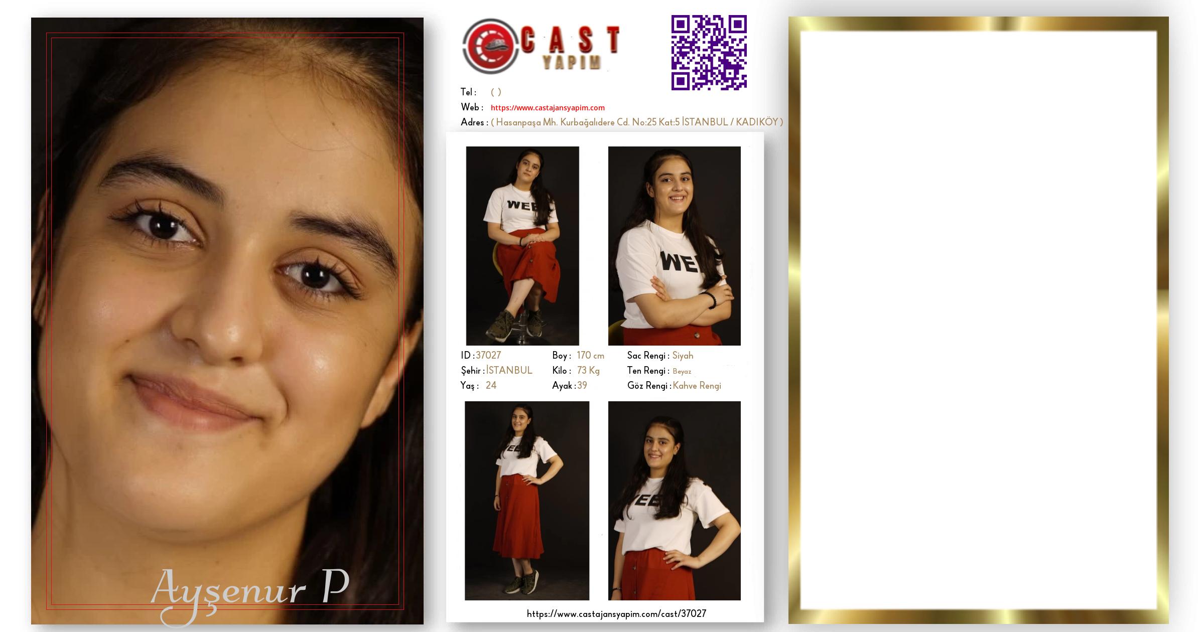 Merhaba, ben Ayşenur. İSTANBUL şehrinde yaşıyorum ve 24 yaşındayım. Genel özelliklerim arasında boyum 170 cm, kilom 73 kg, saç rengim Siyah, göz rengim Kahve Rengi, ten rengim Beyaz.