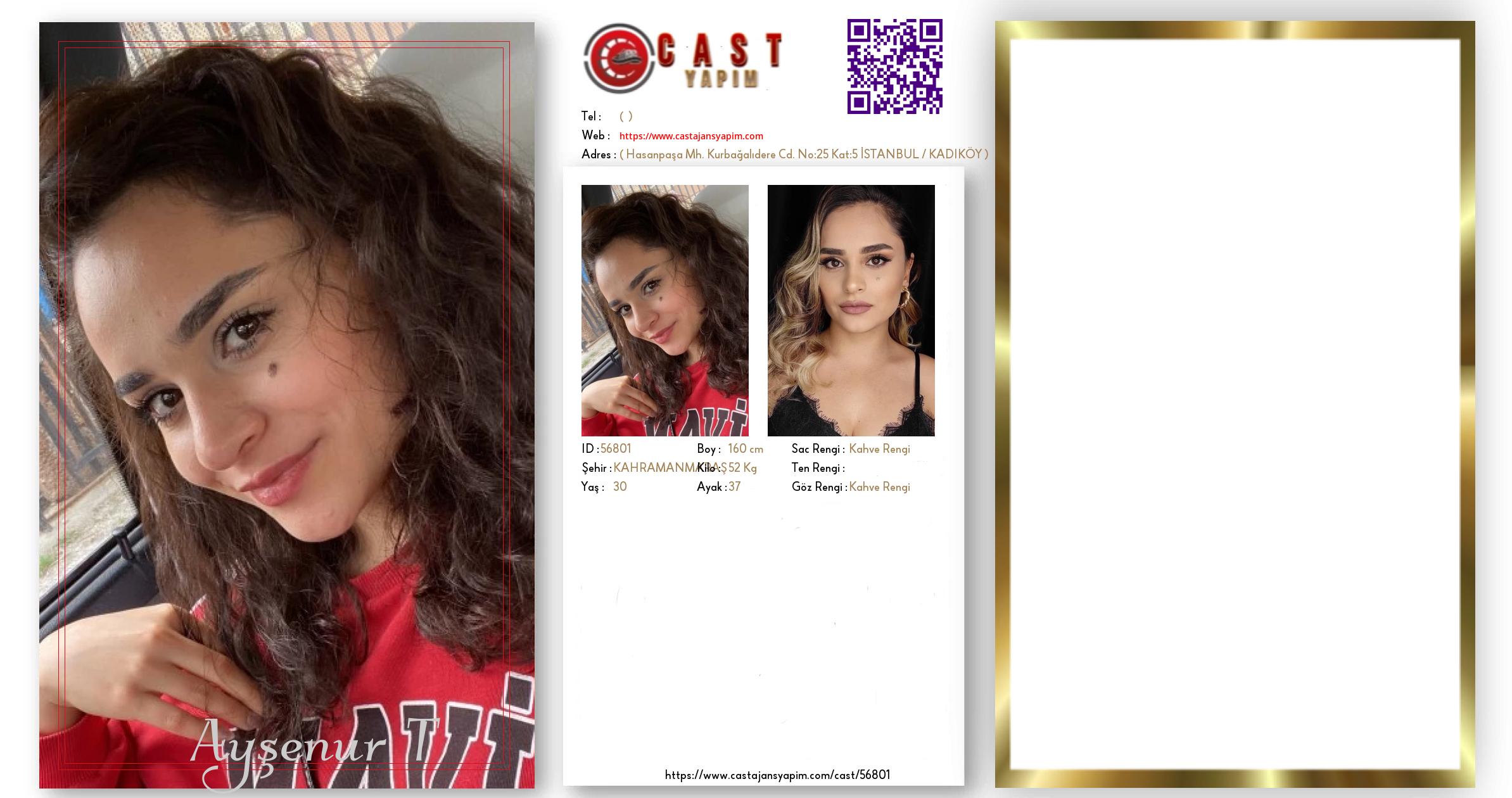 Merhaba, ben Ayşenur. KAHRAMANMARAŞ şehrinde yaşıyorum ve 30 yaşındayım. Genel özelliklerim arasında boyum 160 cm, kilom 52 kg, saç rengim Kahve Rengi, göz rengim Kahve Rengi.