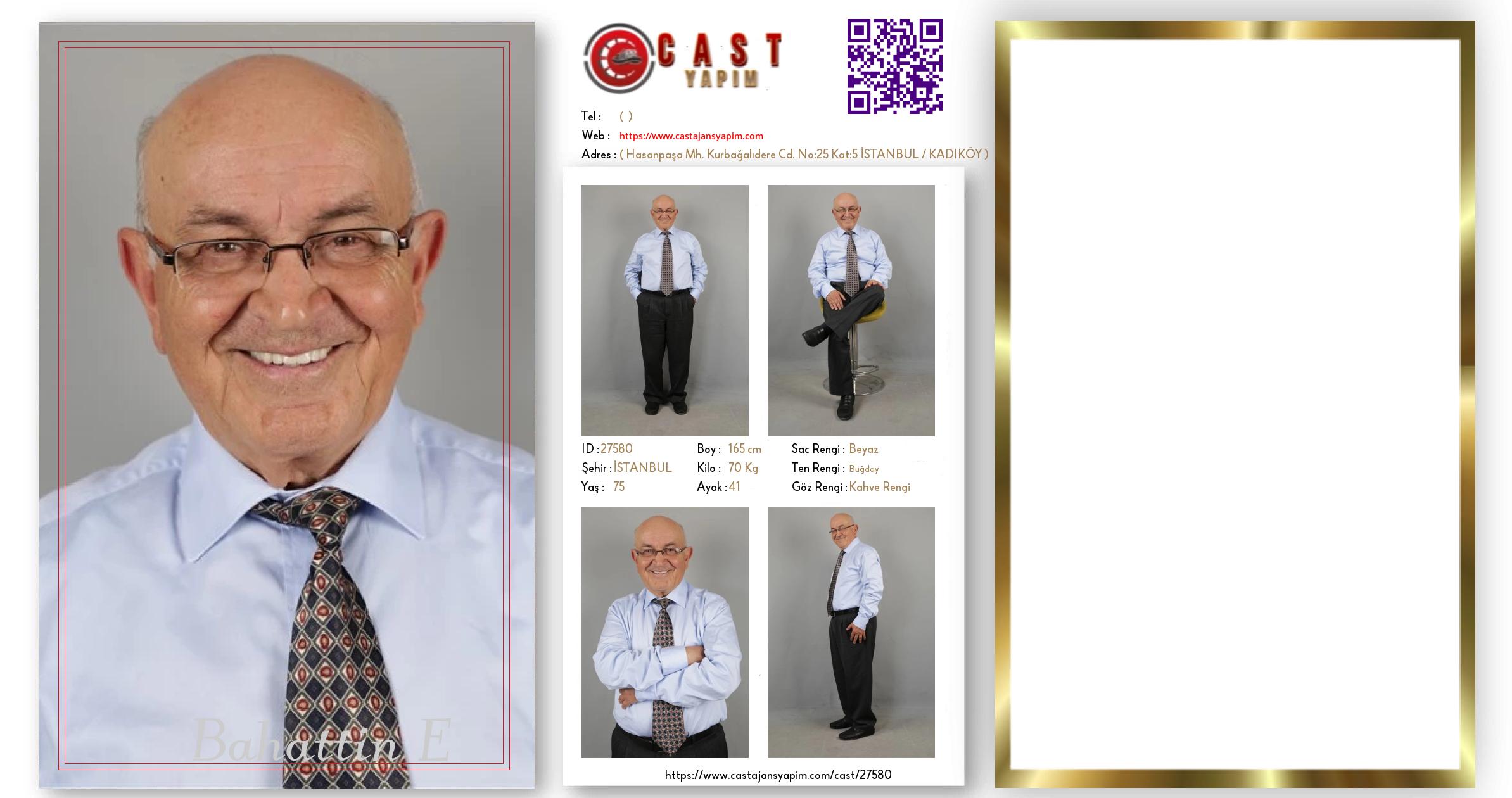 Merhaba, ben Bahattin E. İSTANBUL şehrinde yaşıyorum ve 75 yaşındayım. Genel özelliklerim arasında boyum 165 cm, kilom 70 kg, saç rengim Beyaz, göz rengim Kahve Rengi, ten rengim Buğday.