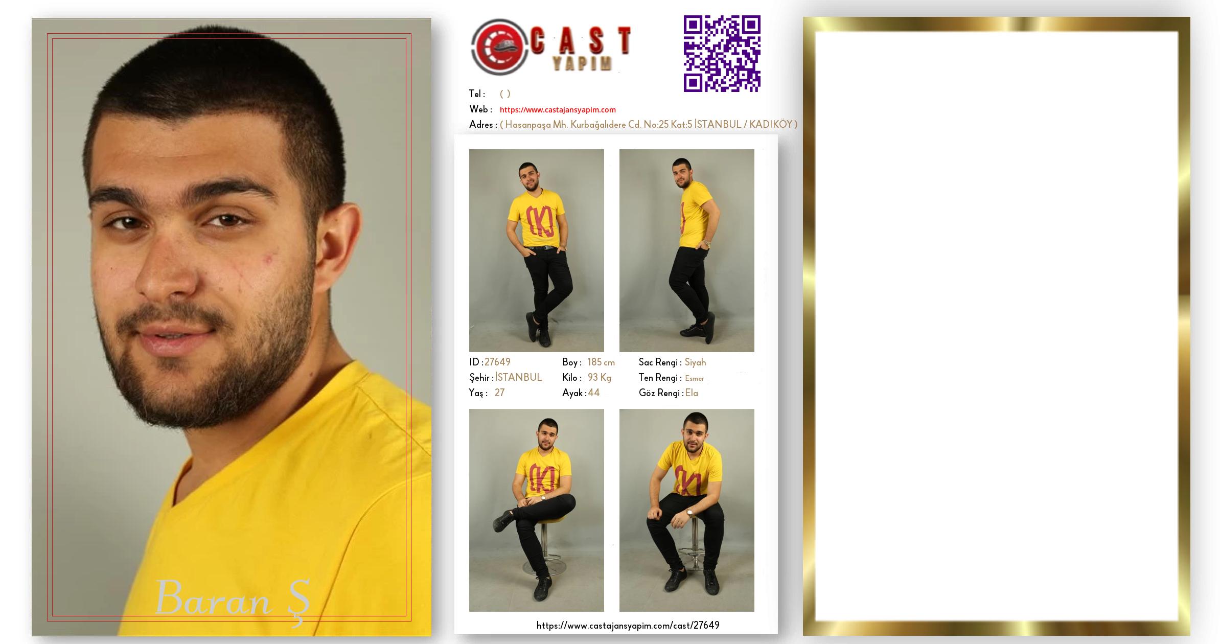 Merhaba, ben Baran. İSTANBUL şehrinde yaşıyorum ve 27 yaşındayım. Genel özelliklerim arasında boyum 185 cm, kilom 93 kg, saç rengim Siyah, göz rengim Ela, ten rengim Esmer.