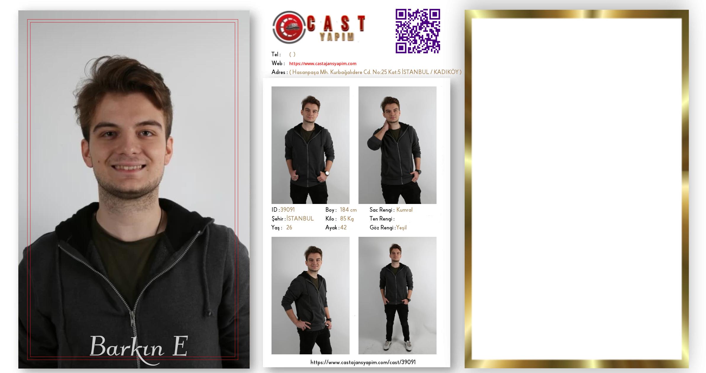 Merhaba, ben Barkın E. İSTANBUL şehrinde yaşıyorum ve 26 yaşındayım. Genel özelliklerim arasında boyum 184 cm, kilom 85 kg, saç rengim Kumral, göz rengim Yeşil.