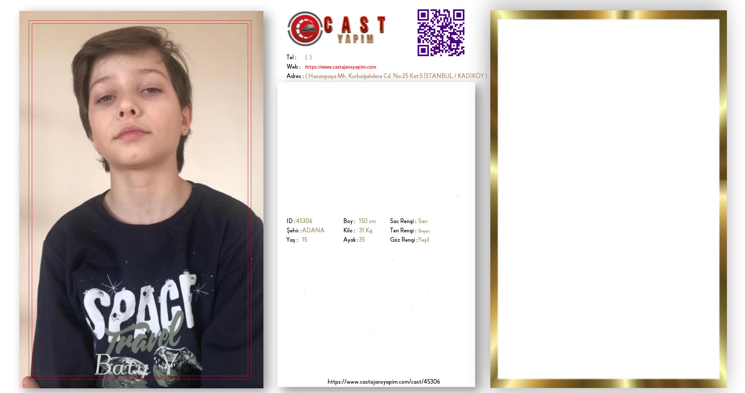 Merhaba, ben Batu Y. ADANA şehrinde yaşıyorum ve 15 yaşındayım. Genel özelliklerim arasında boyum 150 cm, kilom 31 kg, saç rengim Sarı, göz rengim Yeşil, ten rengim Beyaz.