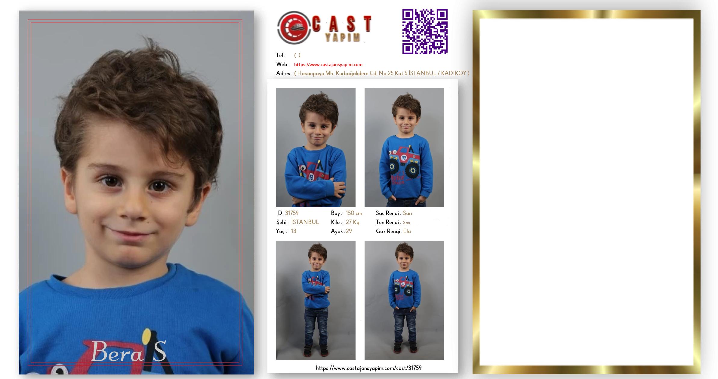 Merhaba, ben Bera S. İSTANBUL şehrinde yaşıyorum ve 13 yaşındayım. Genel özelliklerim arasında boyum 150 cm, kilom 27 kg, saç rengim Sarı, göz rengim Ela, ten rengim Sarı.