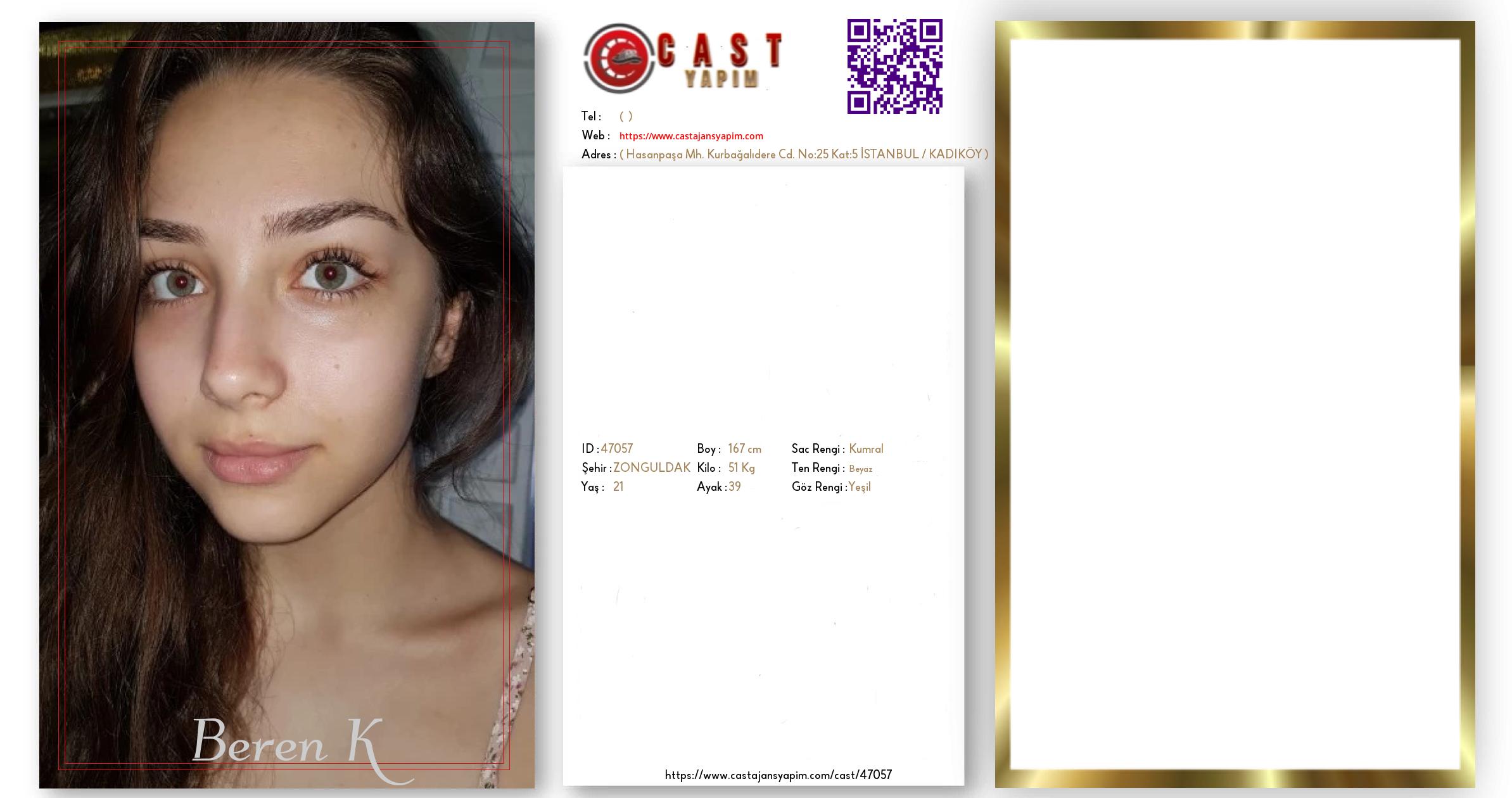 Merhaba, ben Beren Doğa. ZONGULDAK şehrinde yaşıyorum ve 21 yaşındayım. Genel özelliklerim arasında boyum 167 cm, kilom 51 kg, saç rengim Kumral, göz rengim Yeşil, ten rengim Beyaz.