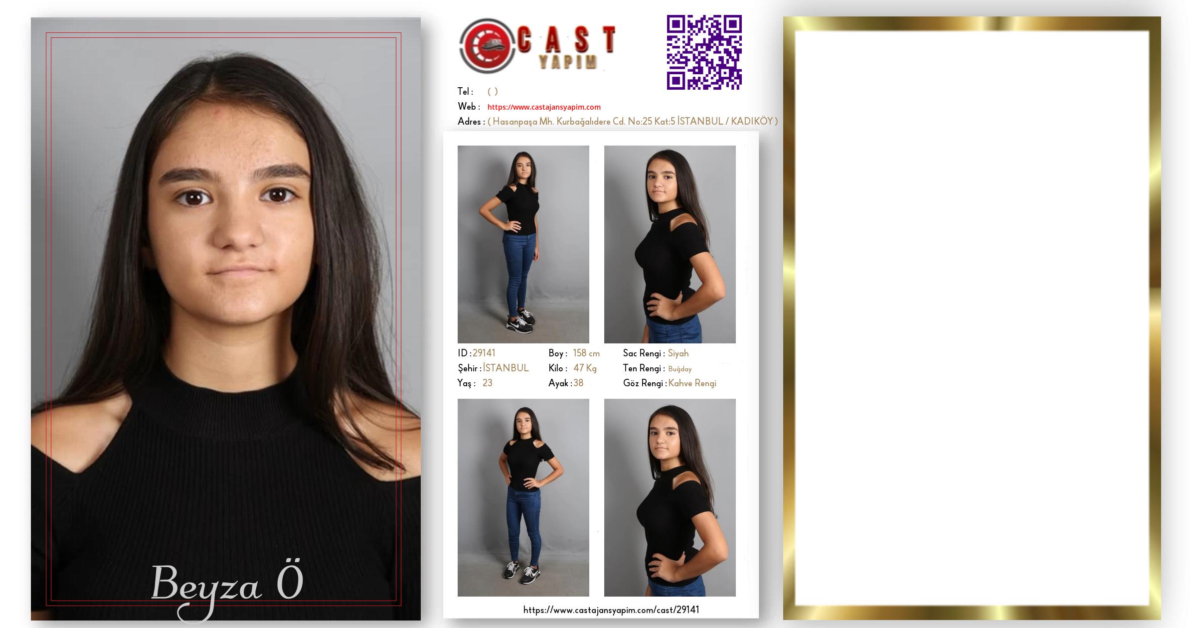 Merhaba, ben Beyza. İSTANBUL şehrinde yaşıyorum ve 23 yaşındayım. Genel özelliklerim arasında boyum 158 cm, kilom 47 kg, saç rengim Siyah, göz rengim Kahve Rengi, ten rengim Buğday.