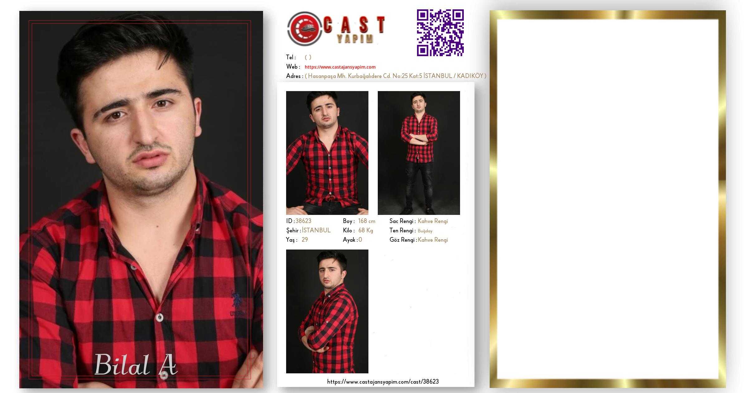 Merhaba, ben Bilal A. İSTANBUL şehrinde yaşıyorum ve 29 yaşındayım. Genel özelliklerim arasında boyum 168 cm, kilom 68 kg, saç rengim Kahve Rengi, göz rengim Kahve Rengi, ten rengim Buğday.