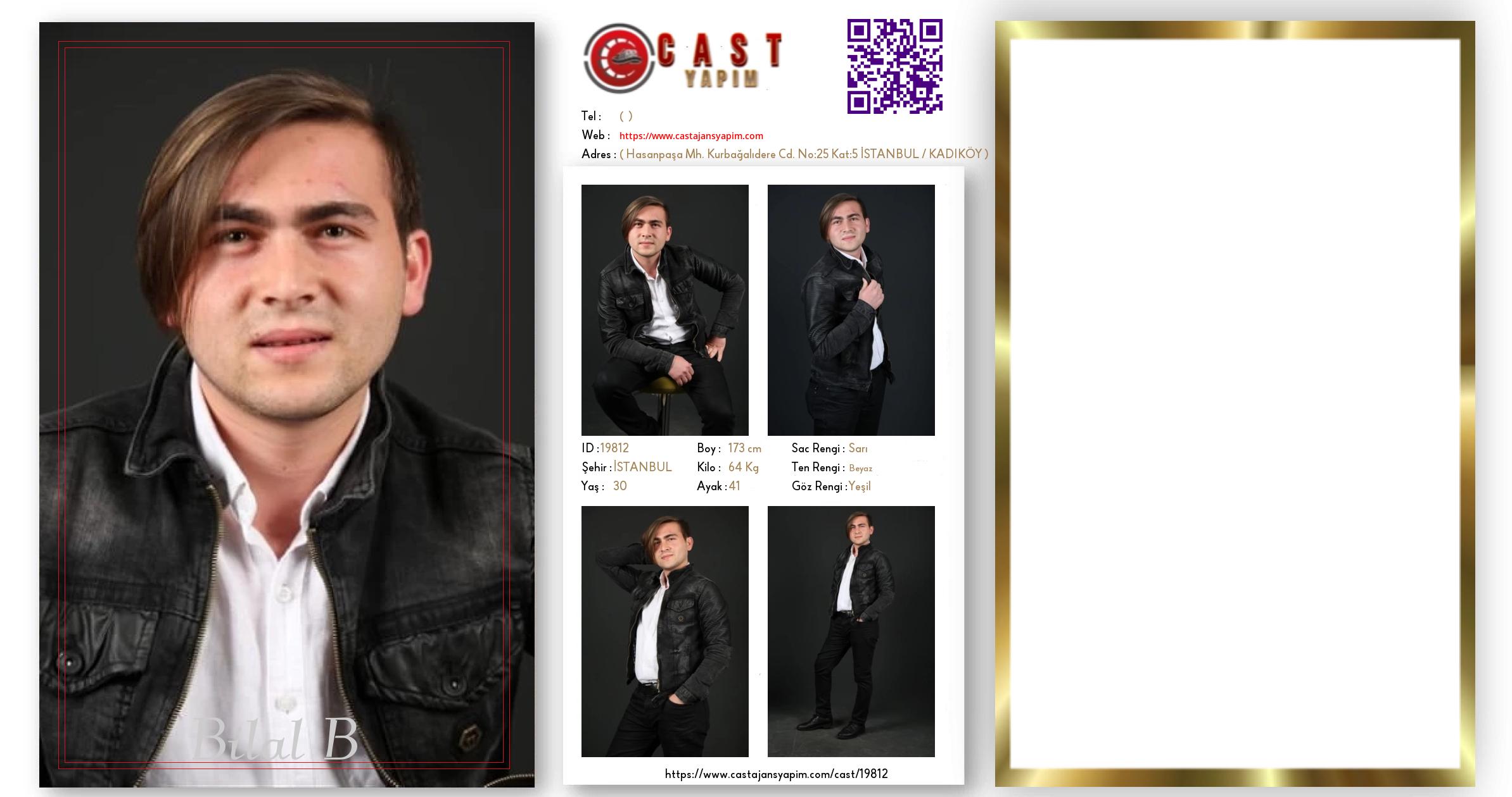 Merhaba, ben Bilal B. İSTANBUL şehrinde yaşıyorum ve 30 yaşındayım. Genel özelliklerim arasında boyum 173 cm, kilom 64 kg, saç rengim Sarı, göz rengim Yeşil, ten rengim Beyaz.