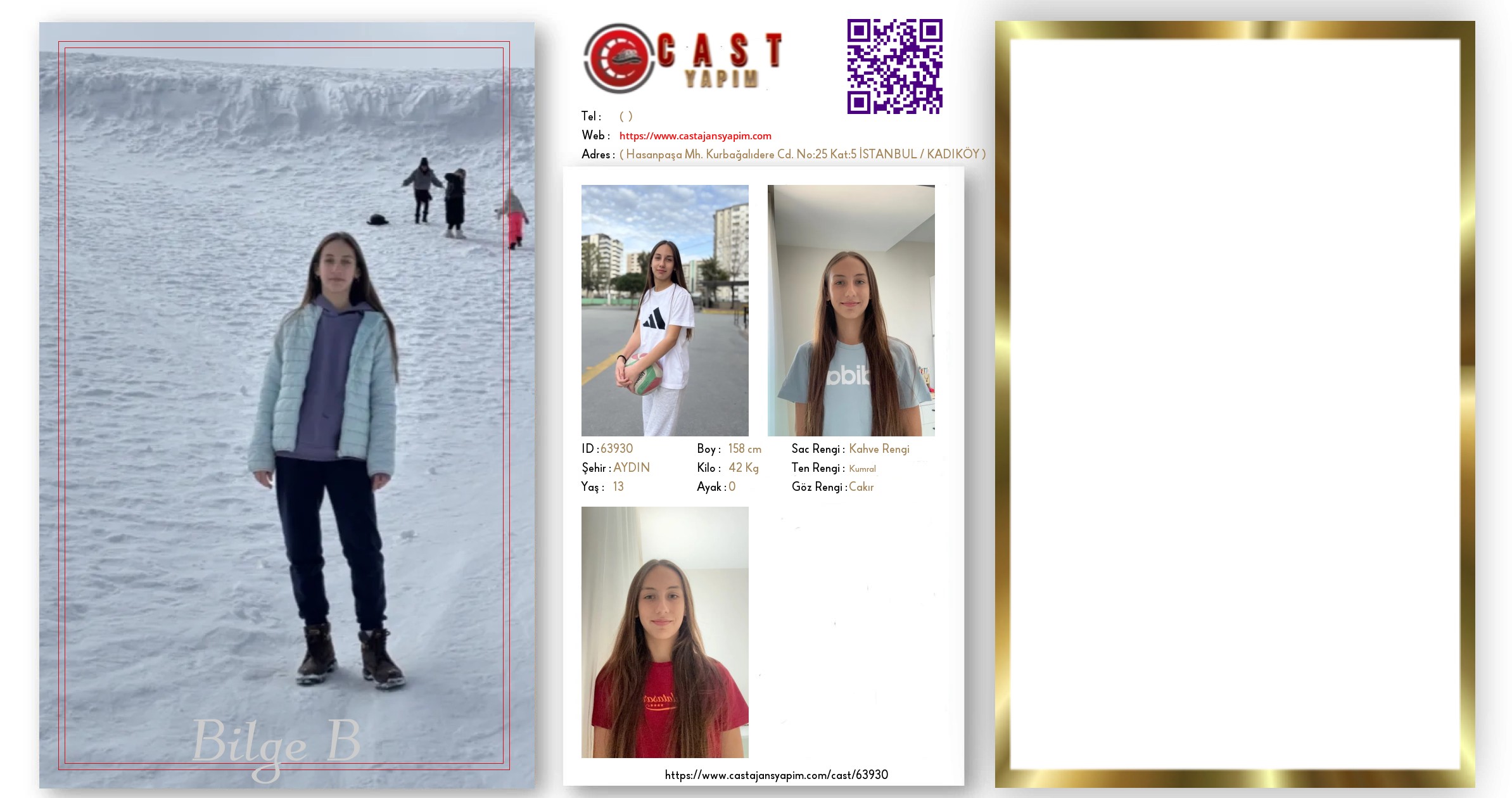 Merhaba, ben Bilge. AYDIN şehrinde yaşıyorum ve 13 yaşındayım. Genel özelliklerim arasında boyum 158 cm, kilom 42 kg, saç rengim Kahve Rengi, göz rengim Çakır, ten rengim Kumral.