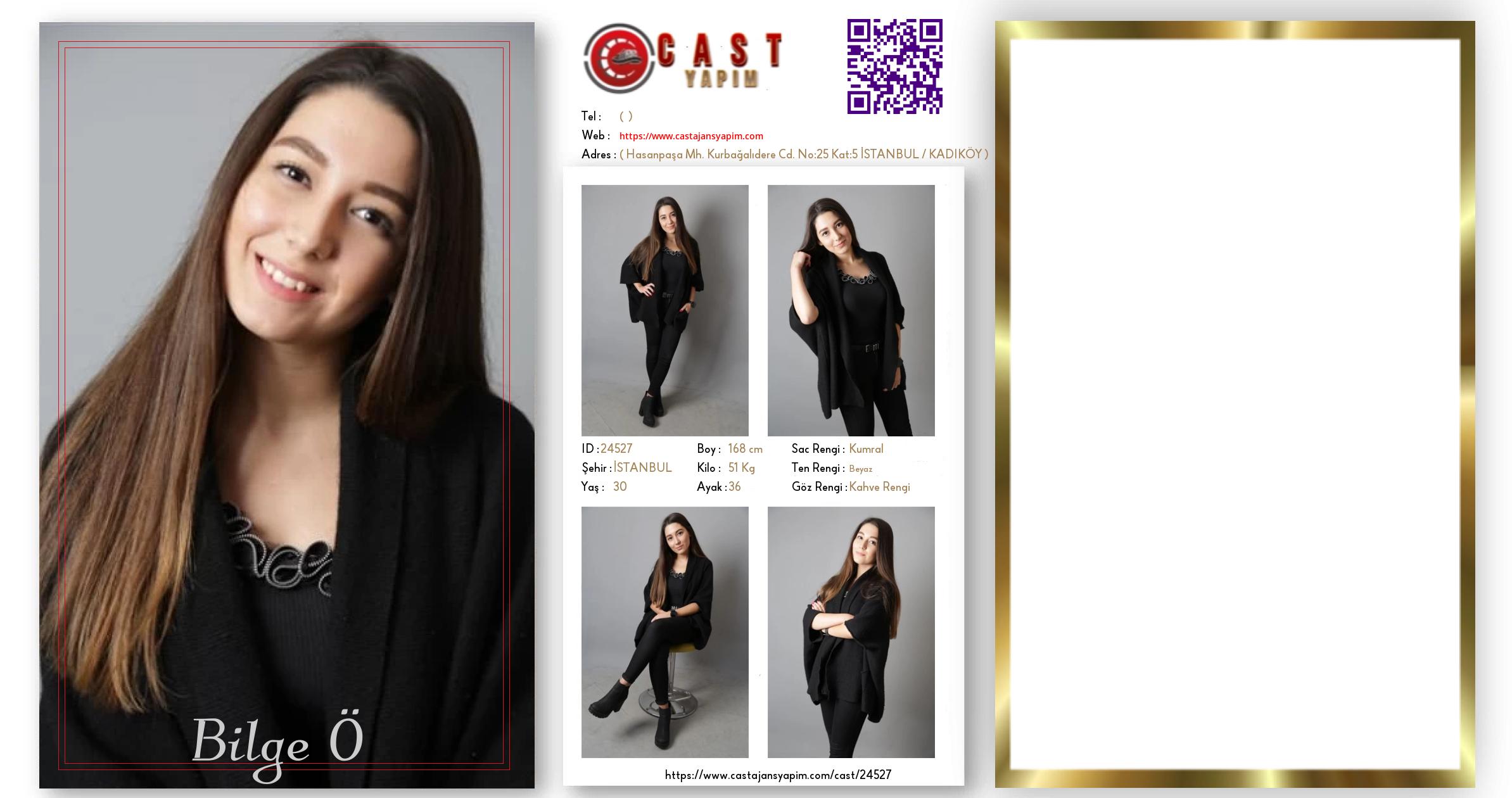 Merhaba, ben Bilge Ö. İSTANBUL şehrinde yaşıyorum ve 30 yaşındayım. Genel özelliklerim arasında boyum 168 cm, kilom 51 kg, saç rengim Kumral, göz rengim Kahve Rengi, ten rengim Beyaz.