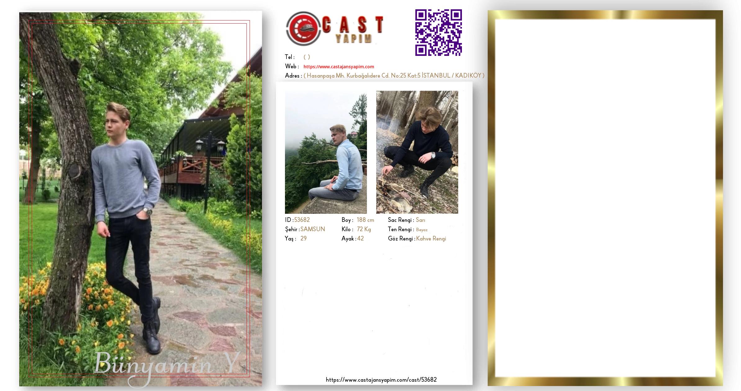 Merhaba, ben Bünyamin. SAMSUN şehrinde yaşıyorum ve 29 yaşındayım. Genel özelliklerim arasında boyum 188 cm, kilom 72 kg, saç rengim Sarı, göz rengim Kahve Rengi, ten rengim Beyaz.