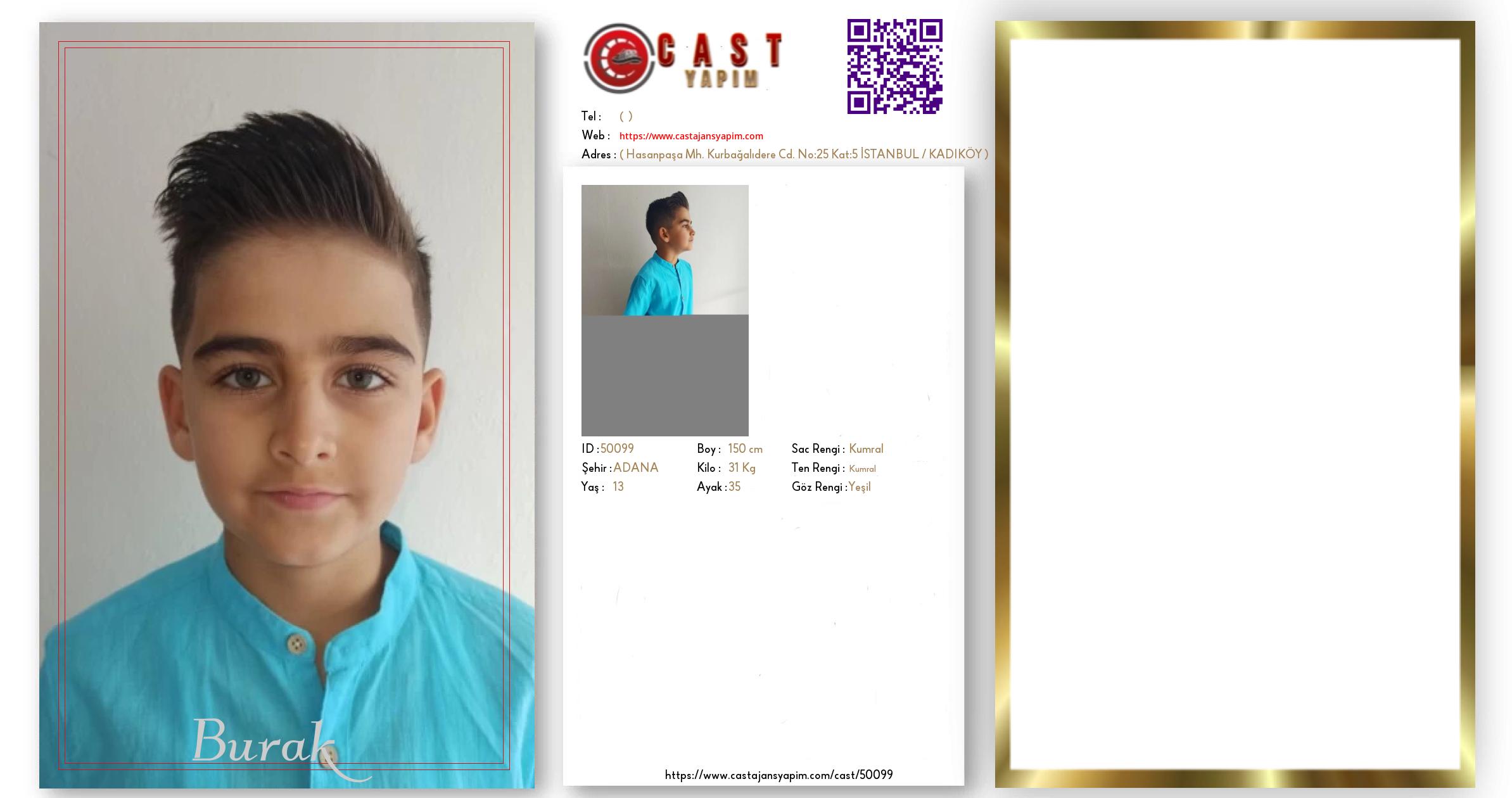 Merhaba, ben Burak. ADANA şehrinde yaşıyorum ve 13 yaşındayım. Genel özelliklerim arasında boyum 150 cm, kilom 31 kg, saç rengim Kumral, göz rengim Yeşil, ten rengim Kumral.